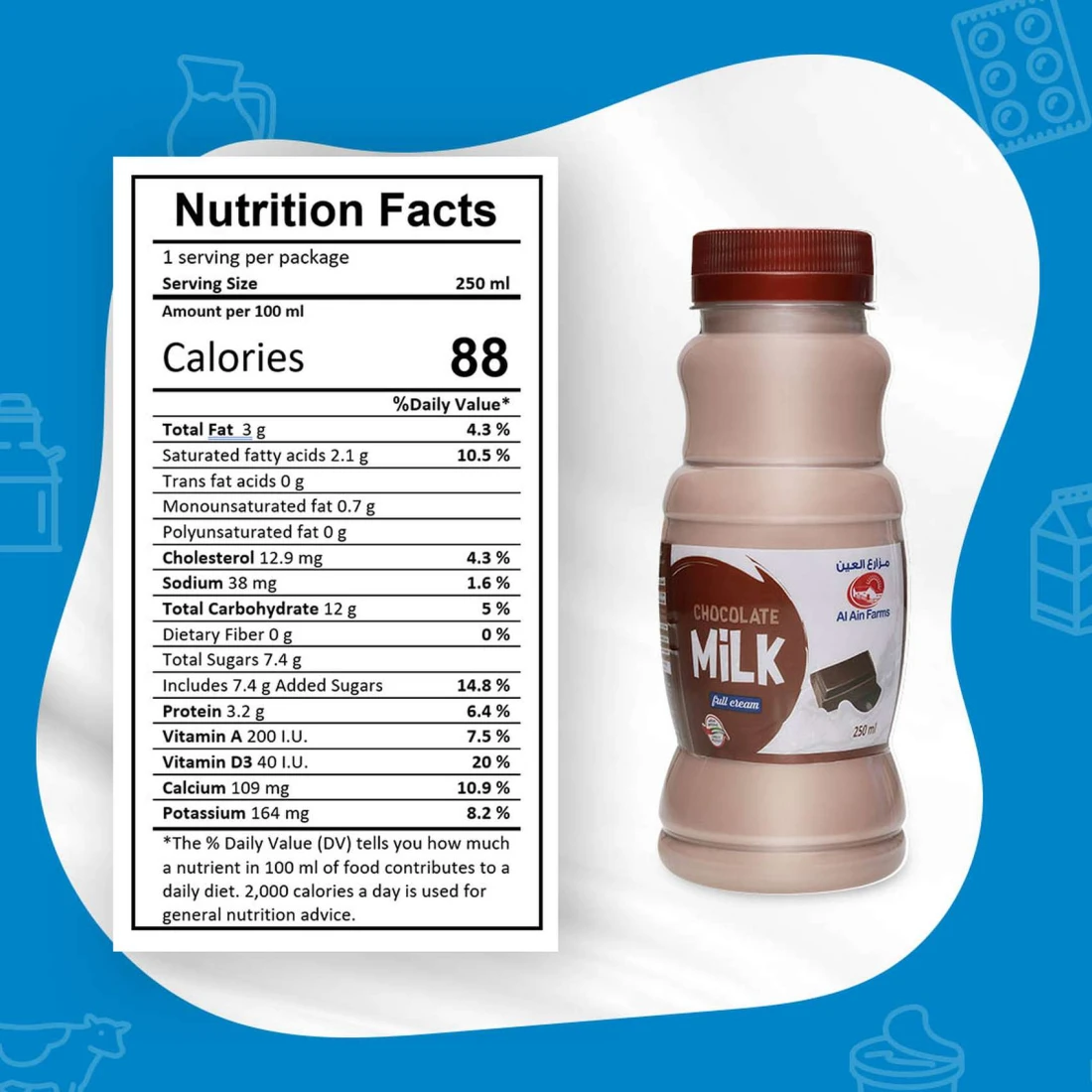 Al Ain chocolate milk is made using high-quality milk. This chocolate-flavoured milk serves as a refreshing energy drink that will be loved by all. It is recommended to be stored in a cool place and served chilled