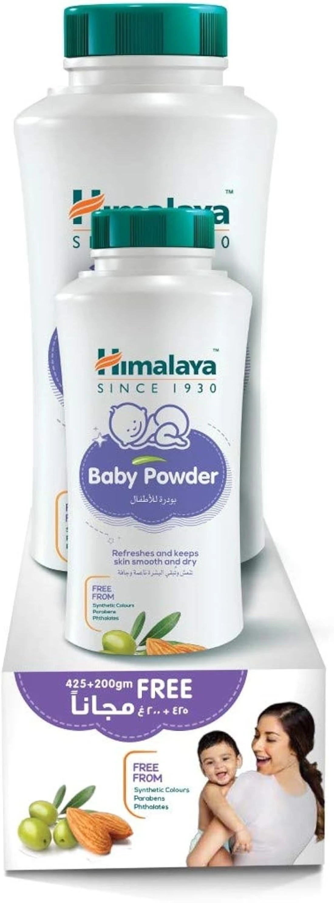 بودرة اطفال من هيمالايا، خالية من البارابين والفثالات والالوان الصناعية، بودرة ناعمة ولطيفة - 425 غرام + 200 غرام