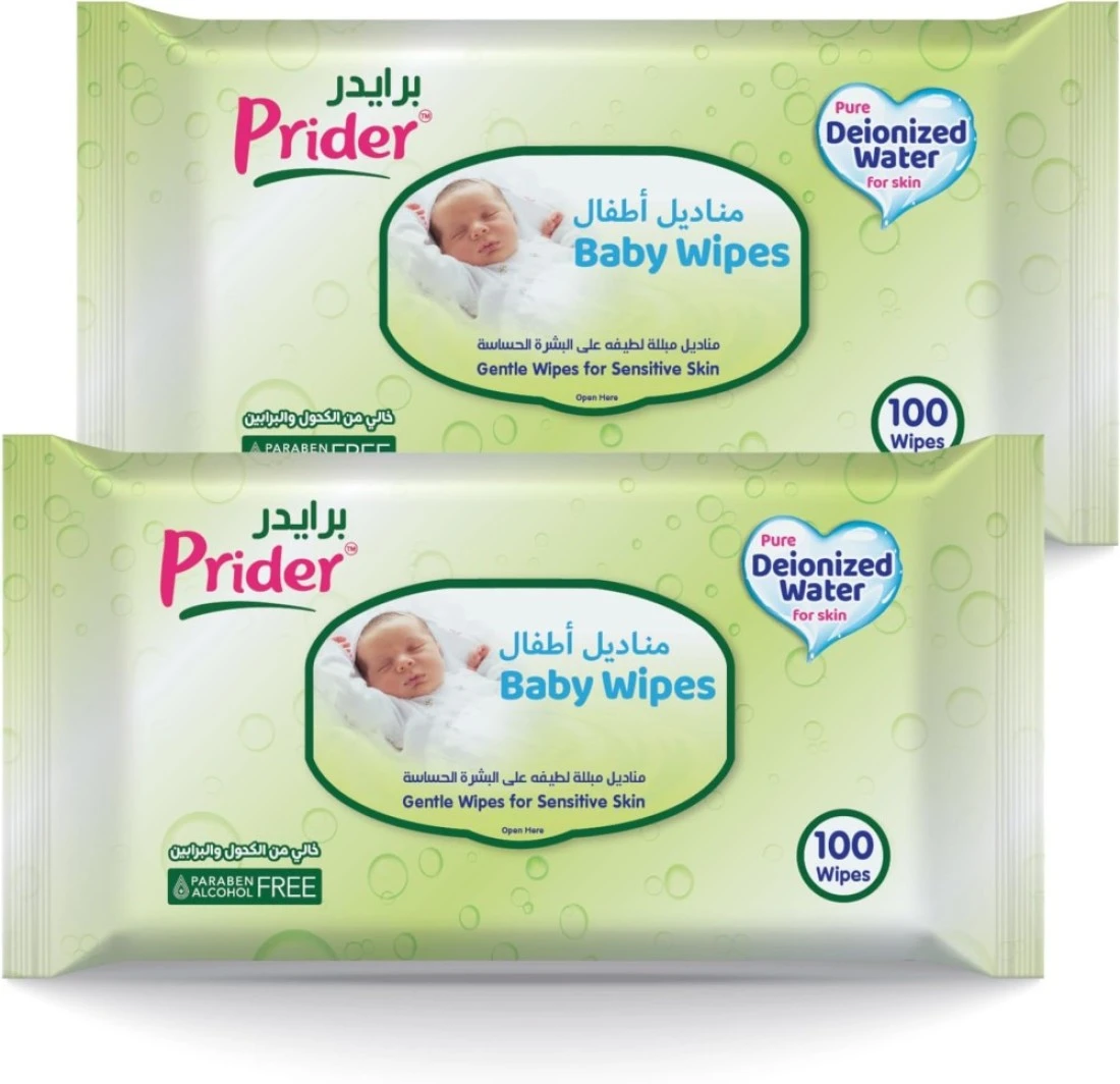 مناديل مبللة للاطفال من برايدر، خالية من الكحول والبارابين، مناديل مبللة بالماء النقي، مناديل لطيفة لبشرة الطفل الحساسة، مناديل مبللة كبيرة جدا وسميكة 200 منديل عرض مجاني 1+1 (200)