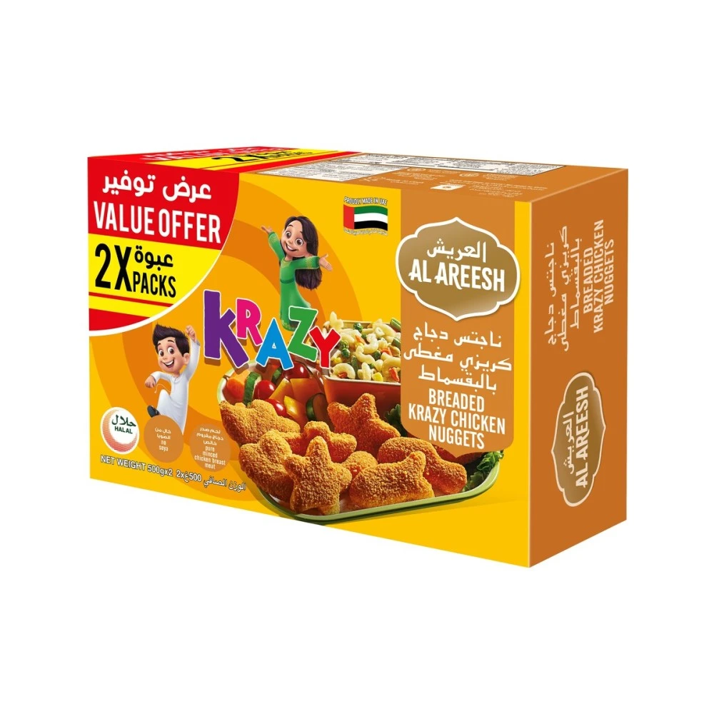 ناغتس الدجاج المقرمش "كريزي" من العريش – عبوتان × ٥٠٠ جم (١ كجم)