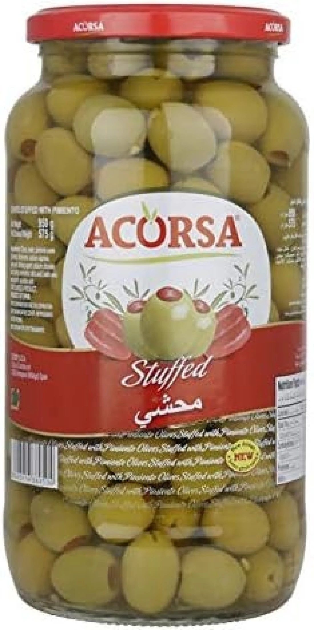 زيتون اخضر محشي من اكورسا، 950 غرام- عبوة واحدة