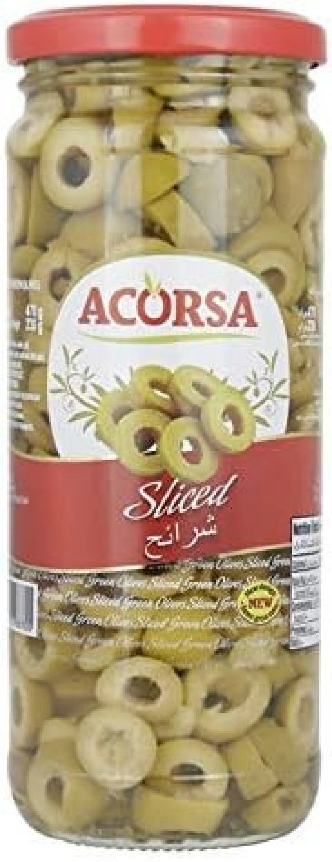 شرائح زيتون اخضر من اكورسا، وزن 470 جرام
