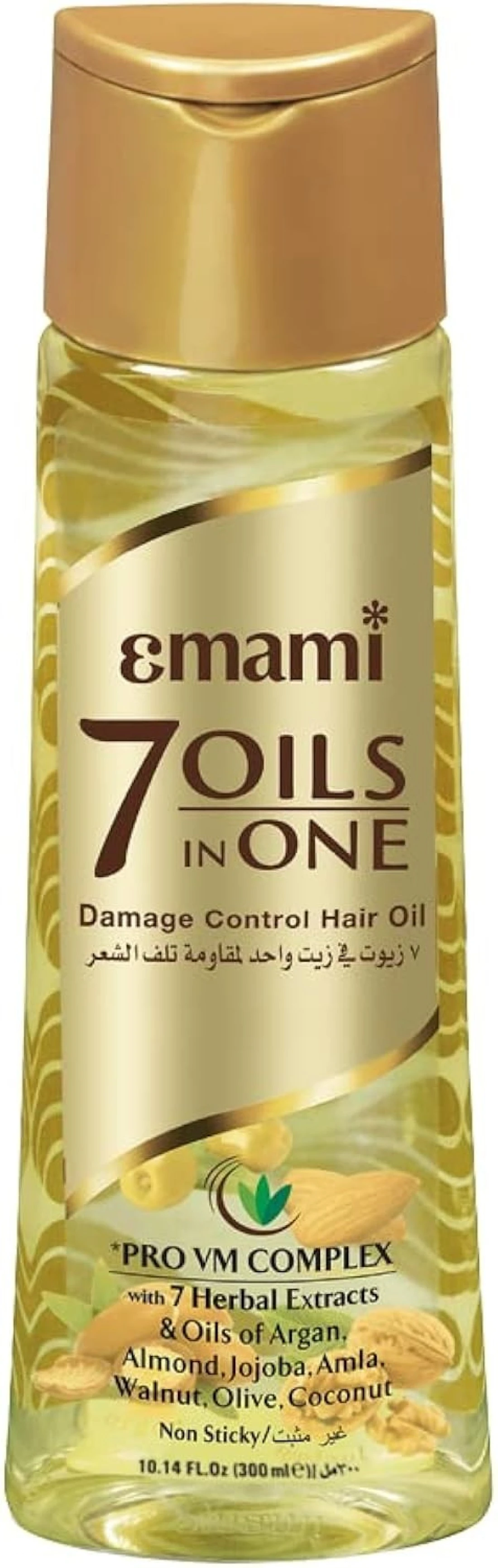 امامي 7 زيوت في زيت للشعر للتحكم في التلف | مع مركب برو في ام | 7 مستخلصات عشبية وزيوت | يقلل من تساقط الشعر حتى 96% | يجعل الشعر اقوى حتى 20 مرة | زيت شعر غير لاصق | 300 مل (عبوة من قطعة واحدة)