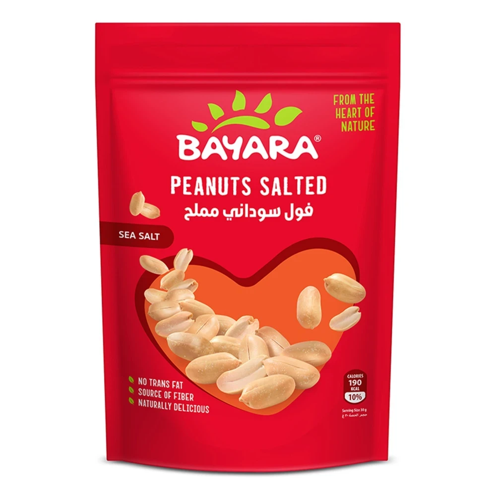 يقدم فـول سوداني مملّح من Bayara محمّصًا بشكل خفيف وملحًا بعناية، مما يمنحه قرمشة غنية بالبروتين. يأتي في عبوة ١٥٠ غ سهلة الاستخدام، مثالي للتناول مباشرة، أو إضافته على السلطات، أو داخل وجبات خفيفة منزليًا .
