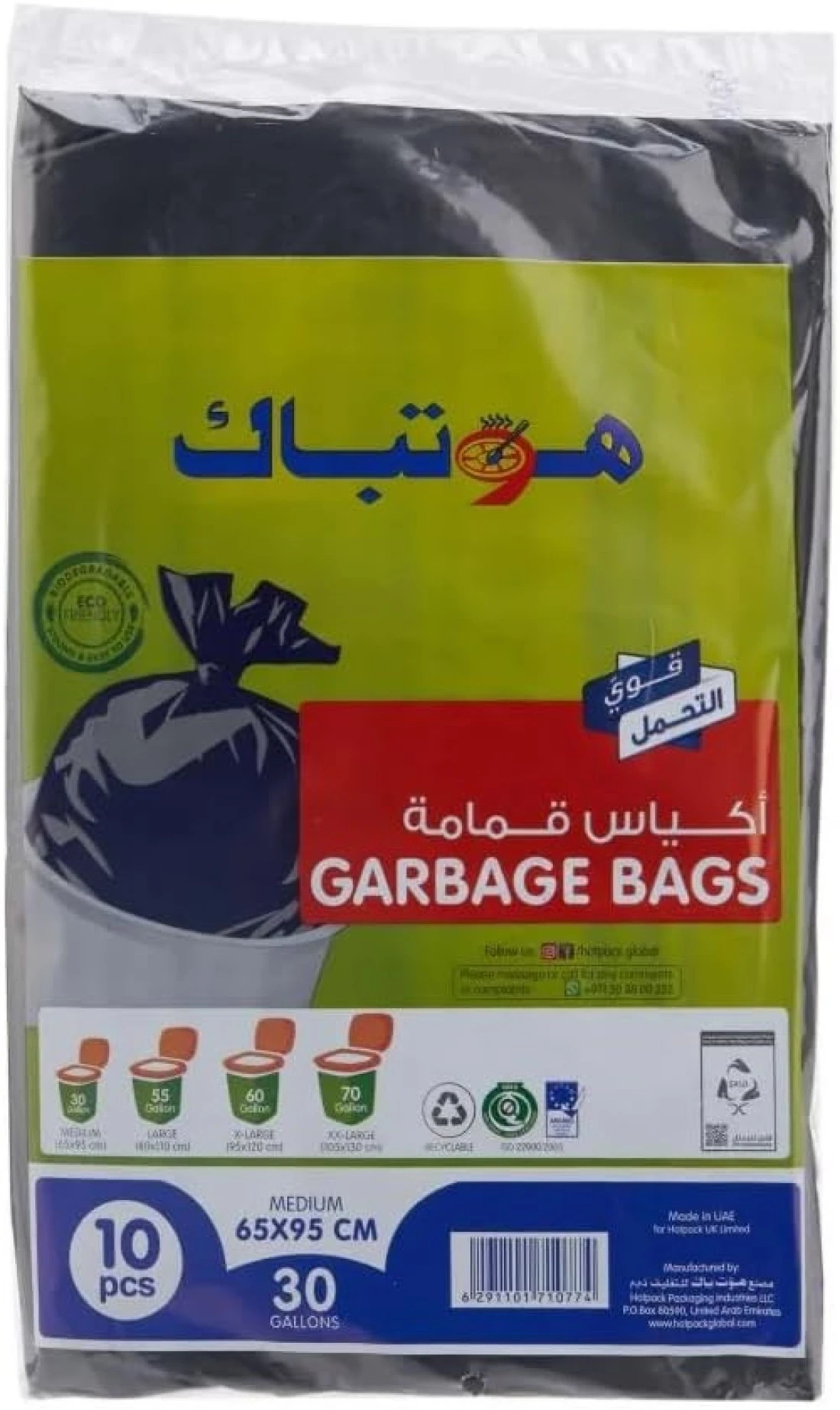 اكياس قمامة 105 × 130 سم تتحمل الاستخدام الشديد وتتسع 70 جالون، 10 قطع من هوتباك، 10 وحدات