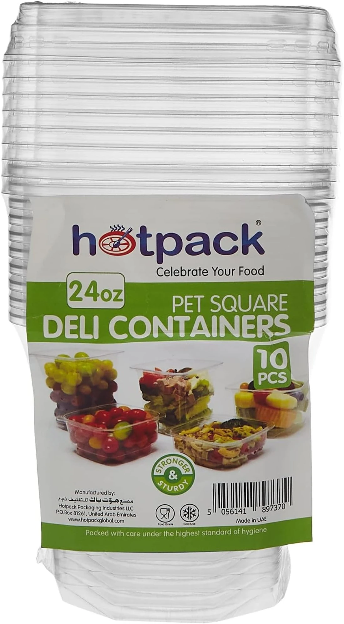 حاويات ديلي المربعة المصنوعة من البولي اثيلين تيرفثالات من هوت باك مزودة بغطاء سعة 24 اونصة - 10 قطع ' 10 وحدات