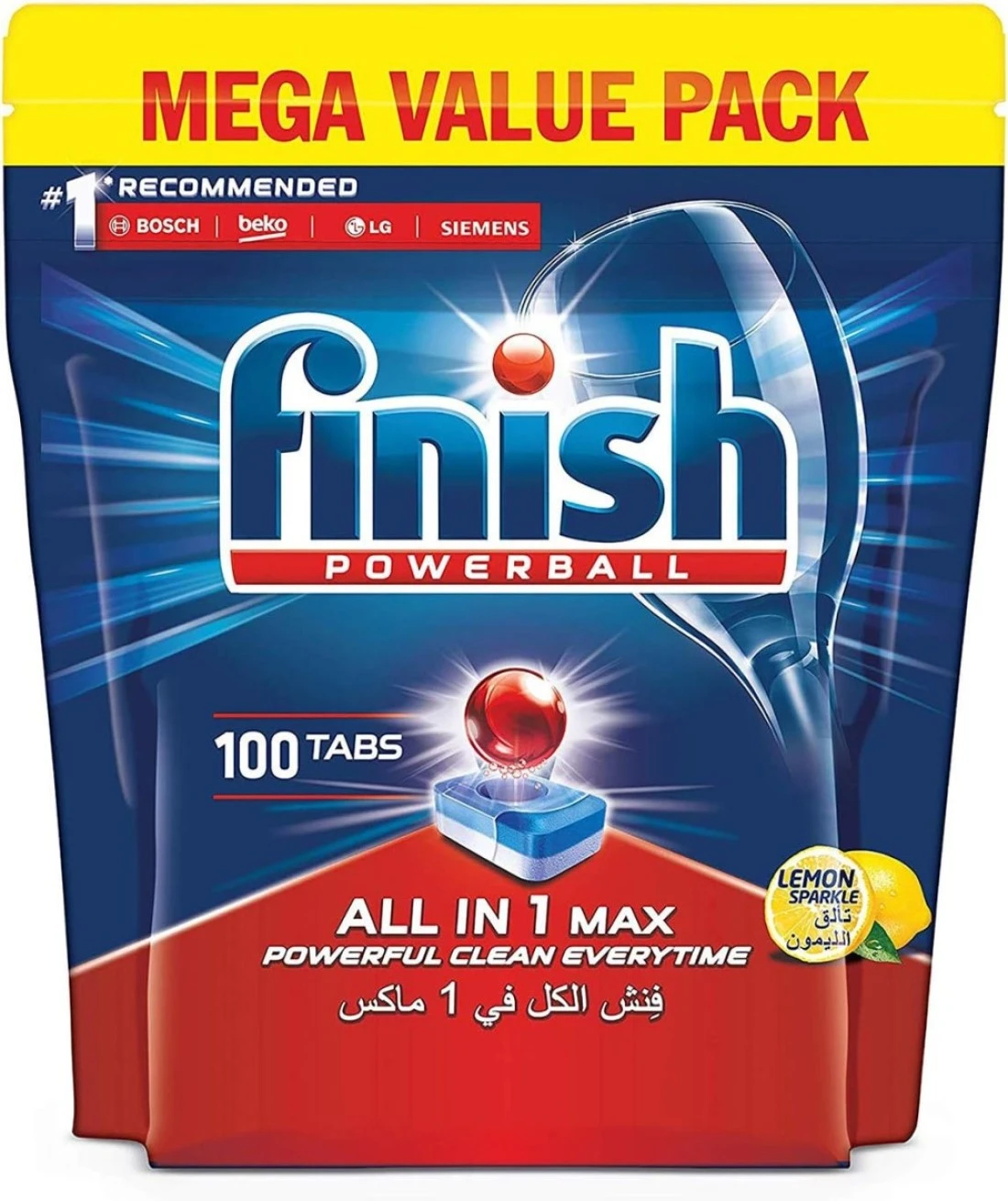 اقراص مسحوق تنظيف لغسالة الصحون برائحة الليمون من فينيش، الكل في واحد، 100 قرص