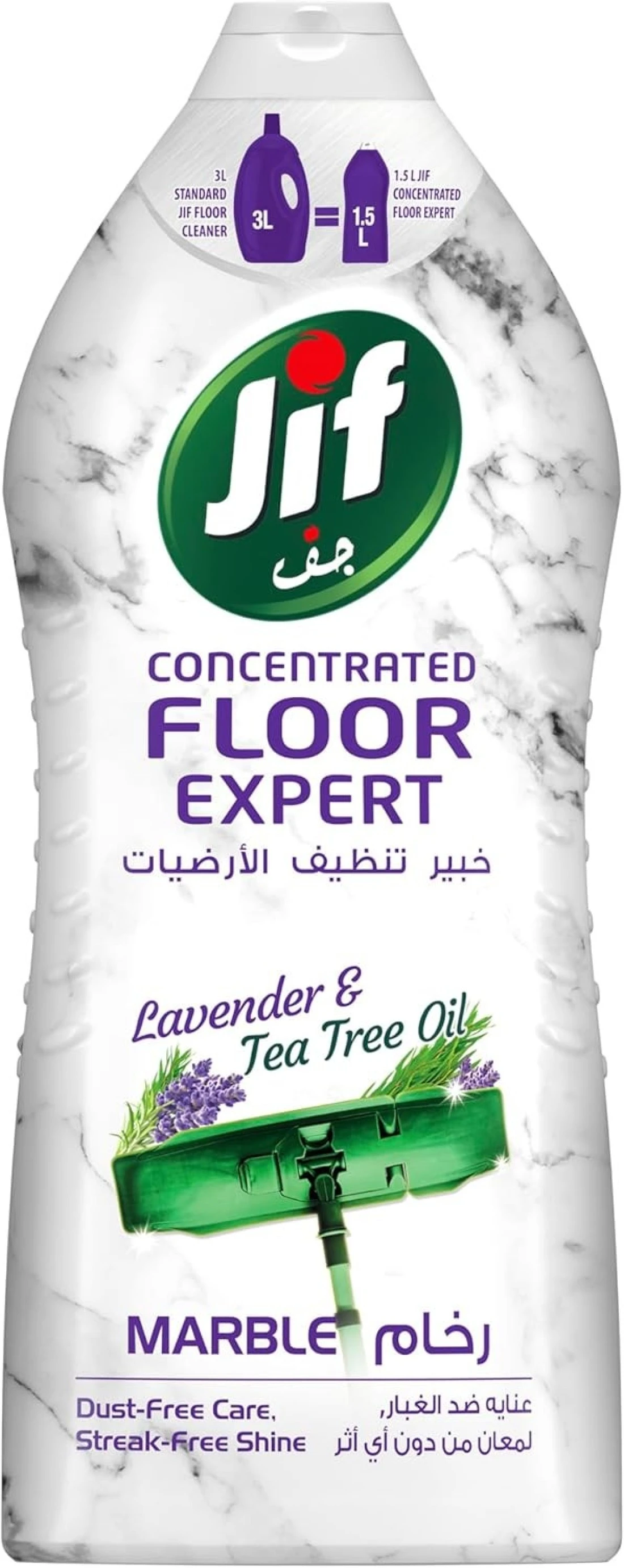 خبير تنظيف الأرضيات المركز للرخام من جيف، تركيبة بتركيز مضاعف لتنظيف فعال، باللافندر وزيت شجرة الشاي، يضيف إشراقة ولمعانا رائعا، 1500 مل