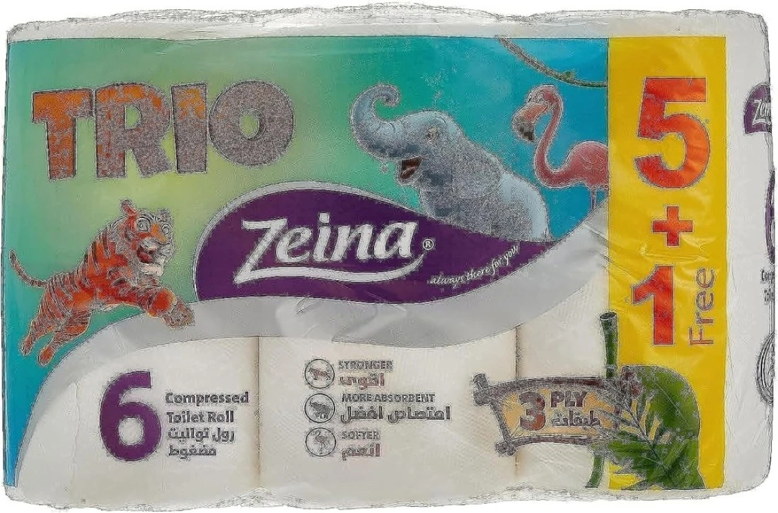 زينا لفة ورق تواليت ثلاثية - 6 بكرات
