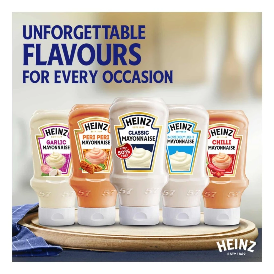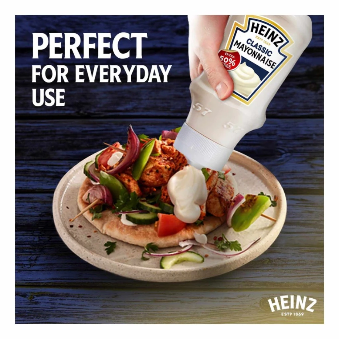 - المذاق الكلاسيكي نفسه: مع قوامه الكريمي وطعمه اللذيذ، يعد المايونيز الكريمي هاينز مثاليًا بالإضافة إلى البطاطس المقلية أو الكباب لمزيد من النكهة. li>