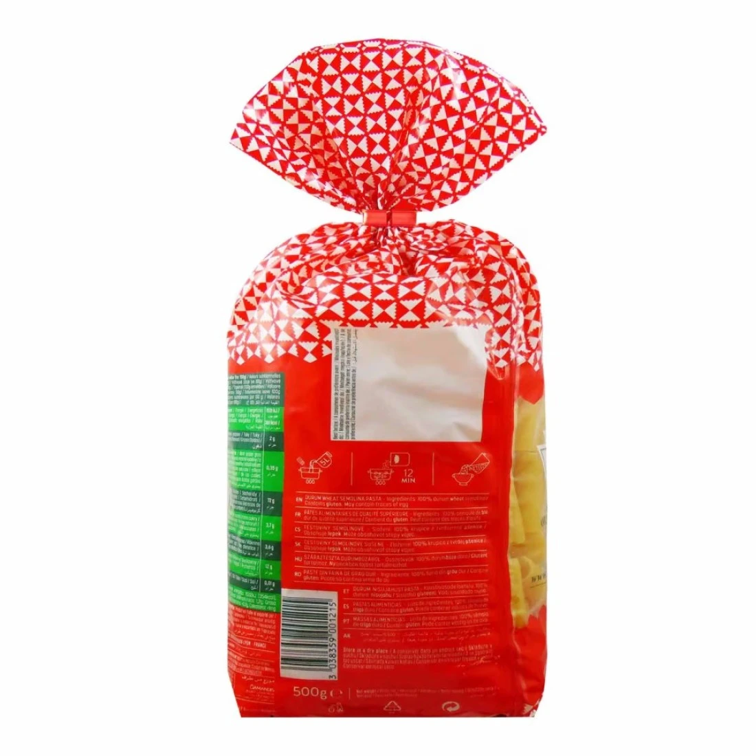 ingredients : 100٪ سميد قمح صلب عالي الجودة. قد تحتوي على آثار من البيض. يحتوي على غلوتين.