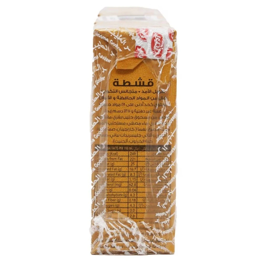 كي دي دي كريمة ثقيلة هي منتج ألبان لذيذ وكريمي يمكن استخدامه بعدة طرق في المطبخ. مصنوعة من حليب طازج عالي الجودة ولها ملمس ناعم ومخملي. مثالية لإضافة الثراء والكريمة إلى الحلويات والمعجنات والصلصات والحساء. تحتوي هذه الحزمة على أربع عبوات سعة 125 ملل، مما يجعلها مناسبة للاستخدام اليومي أو للوصفات الأكبر حجمًا. سواء كنت تخبز كعكة، أو تصنع صلصة المعكرونة، أو ببساطة تستمتع بوعاء من الفاكهة الطازجة، فإن الكريمة الثقيلة من كي دي دي هي إضافة متعددة الاستخدامات وممتعة لأي وصفة.