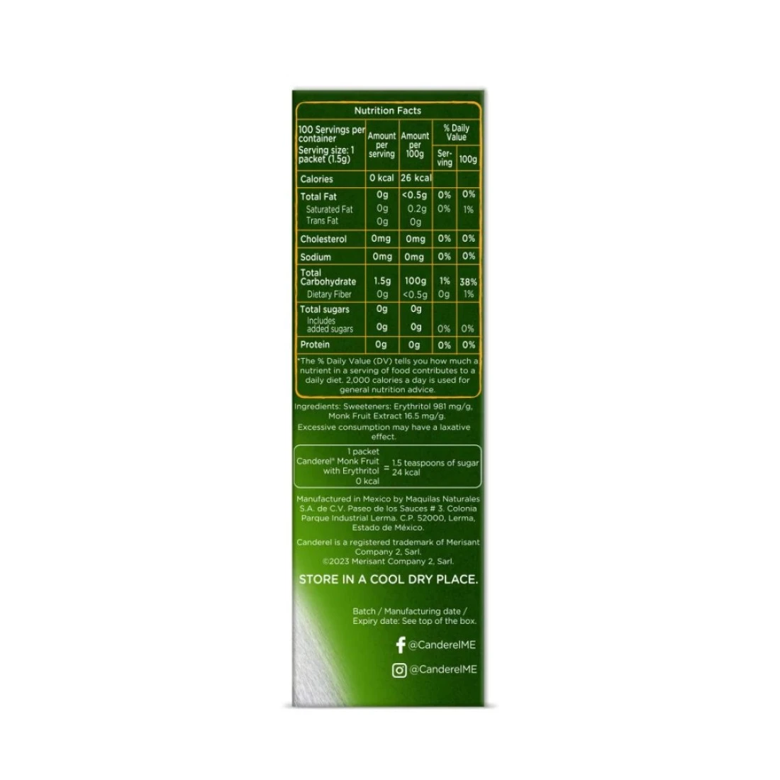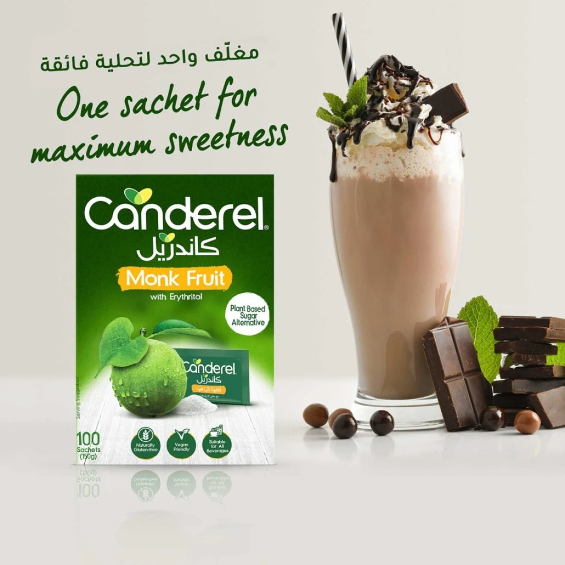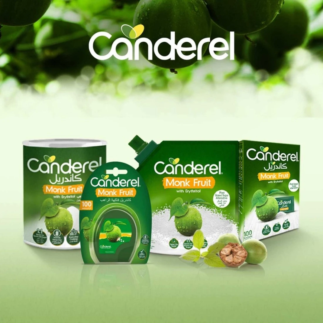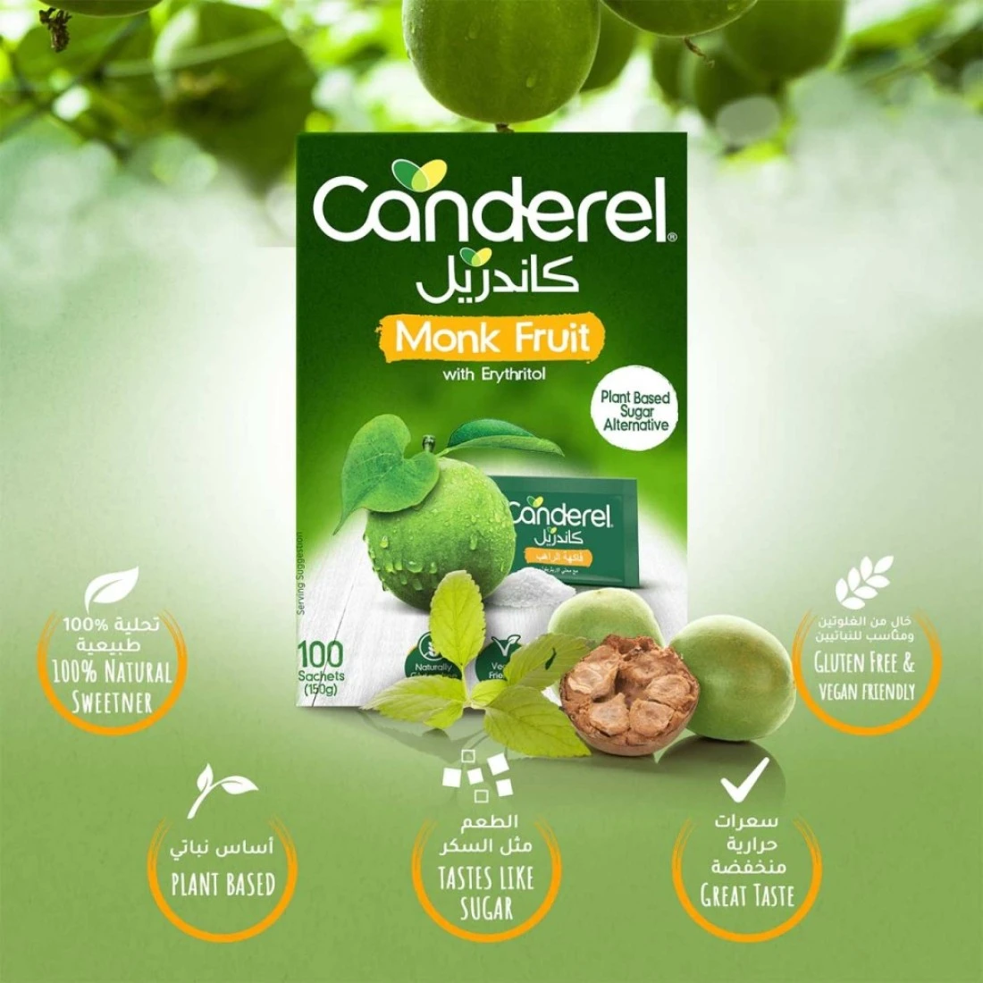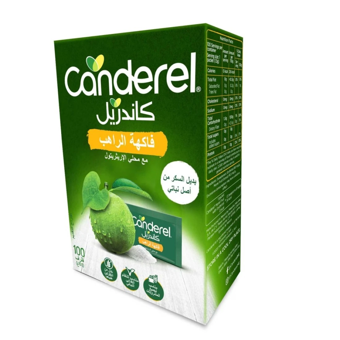 كاندريل أكياس فاكهة الراهب البديلة للسكر مع إريثريتول 100 كيس 150 غرام