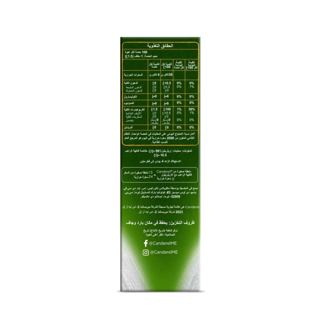 ingredients : إريثريتول 981 ملغ/غ، مستخلص فاكهة الراهب 16.5 ملغ/غ