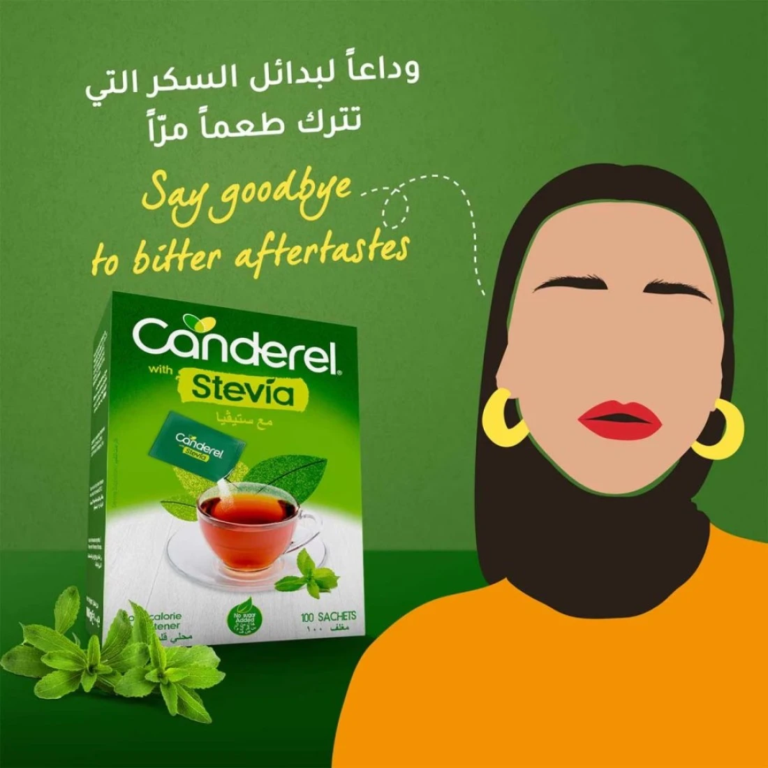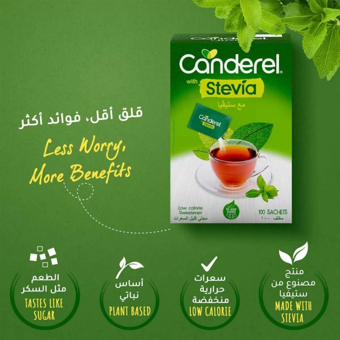 كاندريل مع ستيفيا كيس مُحلي منخفض السعرات الحرارية 100 كيس