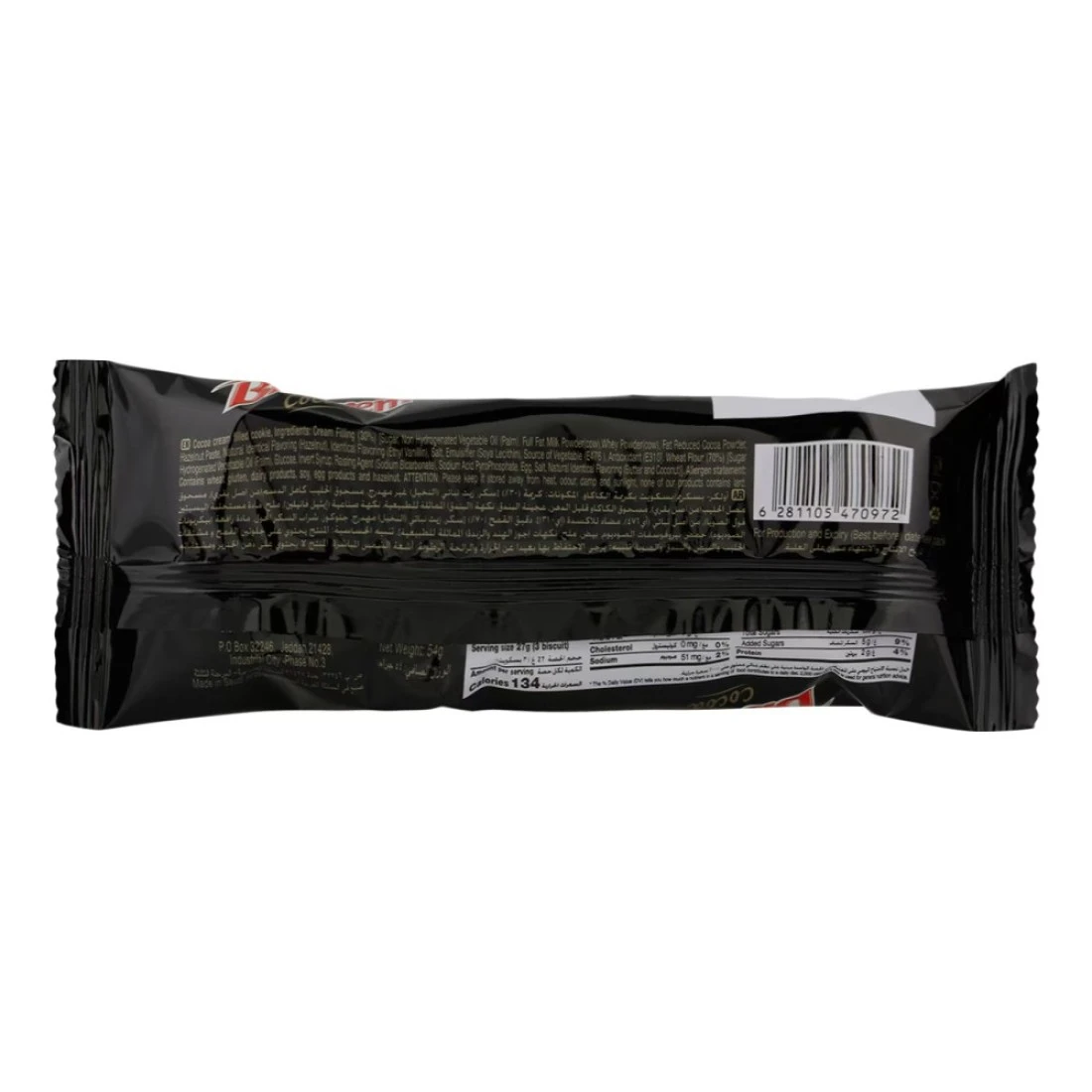 ingredients : دقيق القمح، شوكولاته (سكر، كاكاو، زبدة، مسحوق حليب، كتلة كاكاو، مستحلب)، سكر، شراب الفركتوز، دهن نباتي، شراب الذرة، مسحوق الحليب، ملح، مواد تخمير، نكهات مطابقة للطبيعية.