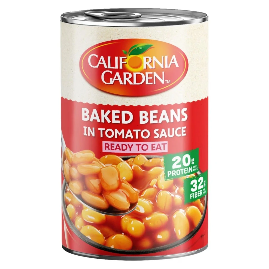 - قم بملئ مخزنك بعلب الفاصوليا المطبوخة في صلصة الطماطم من حدائق كاليفورنيا بوزن 220 غرام.