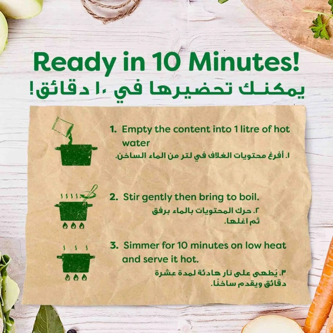 - شوربات كنور المعبأة معتمدة حلال مع الخضروات الطازجة لنكهة صحية.