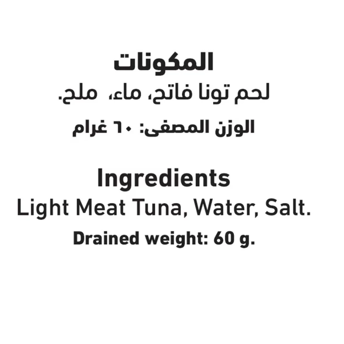 ingredients : تونة، ماء، ملح