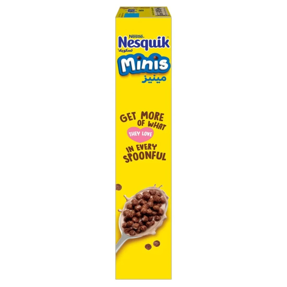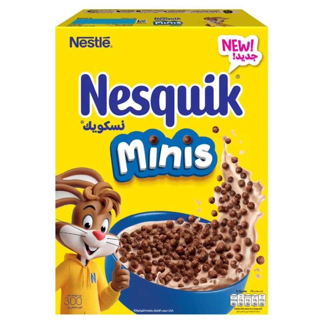 نستله نسكويك مينيز - قطع صغيرة لصباحات ألذ! حبوب نسكويك الكاكاو المفضلة لطفلك متوفرة الآن في كرات أصغر! حبوب نسكويك مينيز، بفضل محتواها من الحبوب الكاملة والفيتامينات والحديد والكالسيوم ونكهة الشوكولاتة الفريدة، تُساعد أطفالك على بدء يومهم ببداية مغذية ولذيذة. تُقدم نسكويك مينيز متعةً لا تُضاهى لجميع الأطفال وعائلاتهم الذين يجتمعون على مائدة الإفطار! حجم صغير*. تُقدم نسكويك الترفيهي لطفلك تجربة إفطار مغذية. *مقارنةً بحبوب نسكويك العادية.