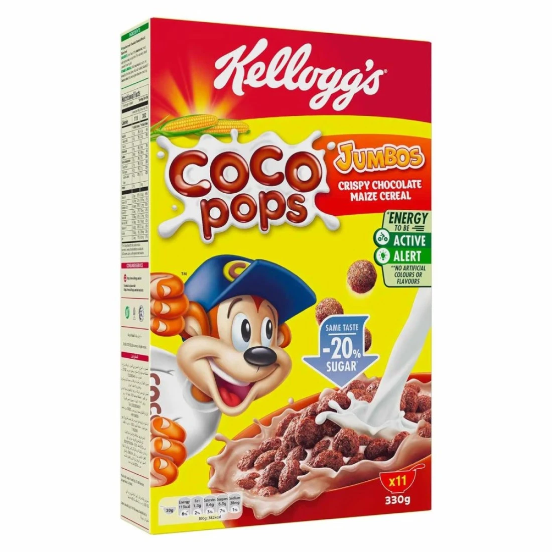حبوب الإفطار المقرمشة بالشوكولاته والذرة من كيلوغز كوكو بوبس جامبو هي خيار شهي ومقرمش لتناول الإفطار. مصنوعة من الشوكولاته الحقيقية والذرة، وتوفر مذاقًا غنيًا ولذيذًا. بفضل رقائقها المقرمشة بحجم جامبو، تعد هذه الحبوب طريقة رائعة لبدء يومك بنكهة الشوكولاته اللذيذة. مثالية للأطفال والكبار على حد سواء، فهي خيار شائع لتناول الإفطار أو كوجبة خفيفة طوال اليوم.