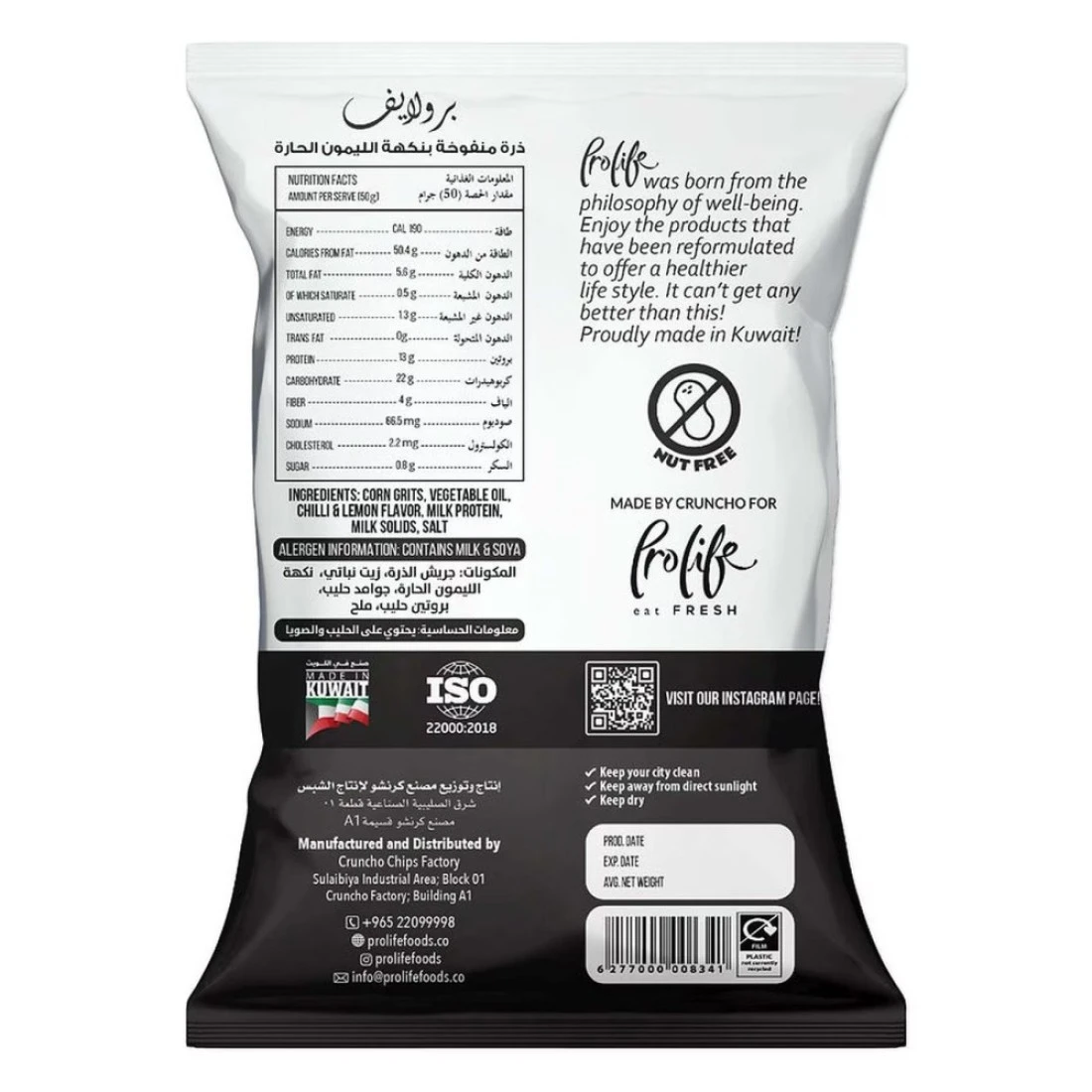 برولايف برو بافس رقائق بطاطا بنكهة الفلفل الحار والليمون 50 غرام