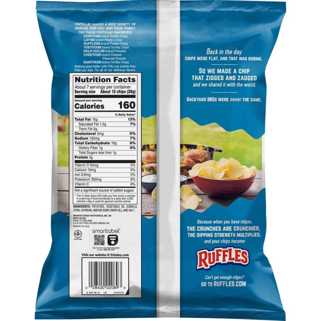 رقائق البطاطس الأصلية من رافلز تتميز بالأخاديد الجريئة والسميكة والعميقة لتمنحك قرمشة لذيذة. إنها قوية بما يكفي لتحمل أي صوص. هذه الرقائق مصنوعة من ثلاث مكونات فقط: البطاطس، الزيت النباتي، والملح. مثالية للمشاركة في لحظات ممتعة ولذيذة في المنزل.