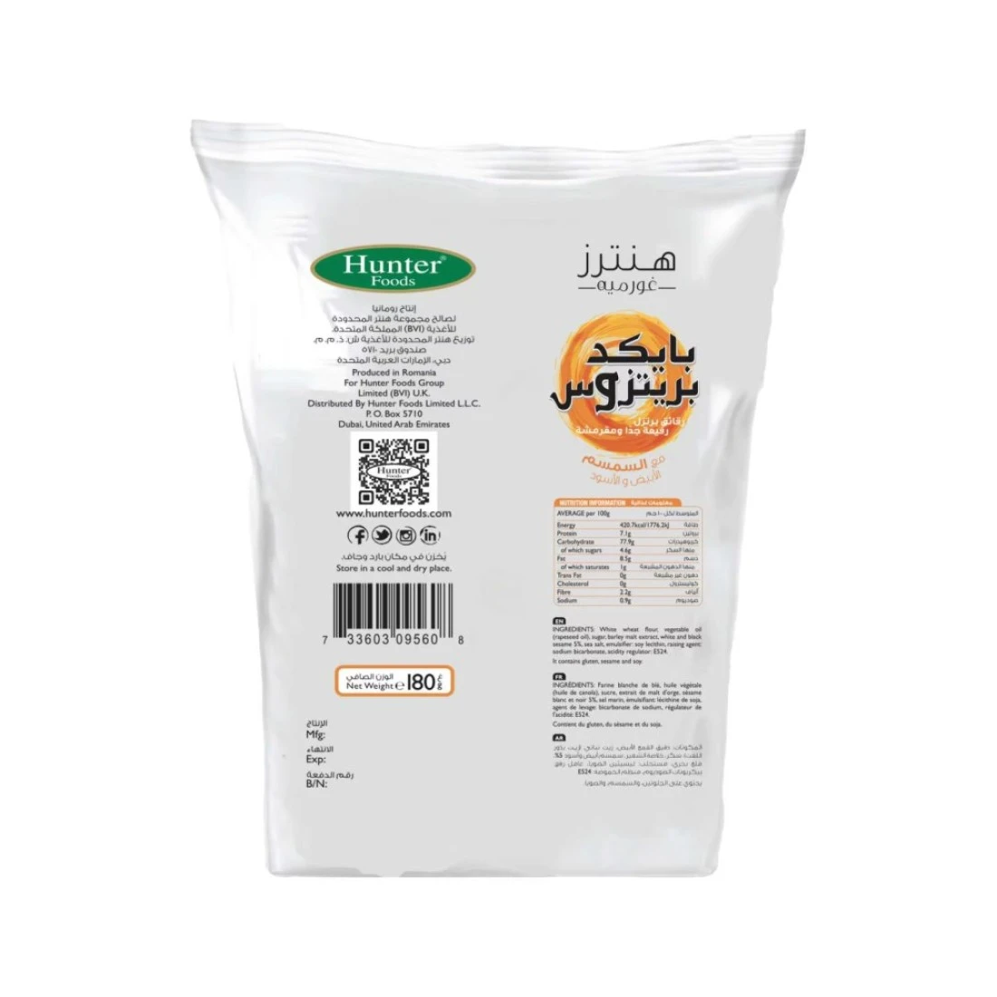 هانترز غورميه بريتزوس مخبوزة بالسمسم الأبيض والأسود 180 غرام