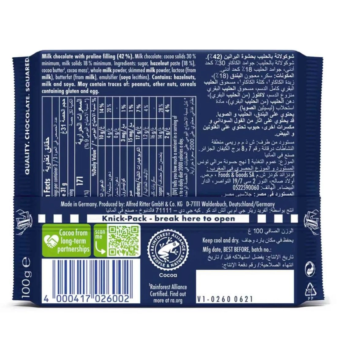 ريتر سبورت شوكولاته برالين 100 غرام
