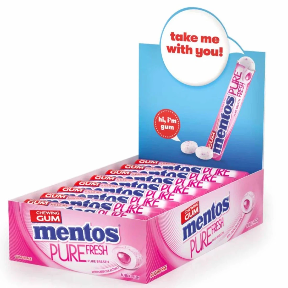 مينتوس بيور فريش علكة خالية من السكر بنكهة الفقاعات 15.75 غرام حزمة من 16 قطعة