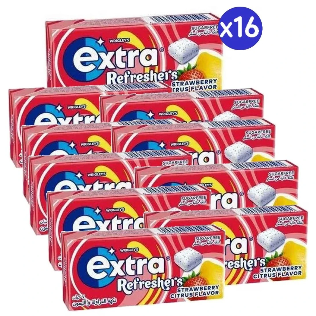 ريغلي إكسترا ريفريشرز علكة بنكهة الفراولة والحمضيات خالية من السكر 15.6 غرام حزمة من 16