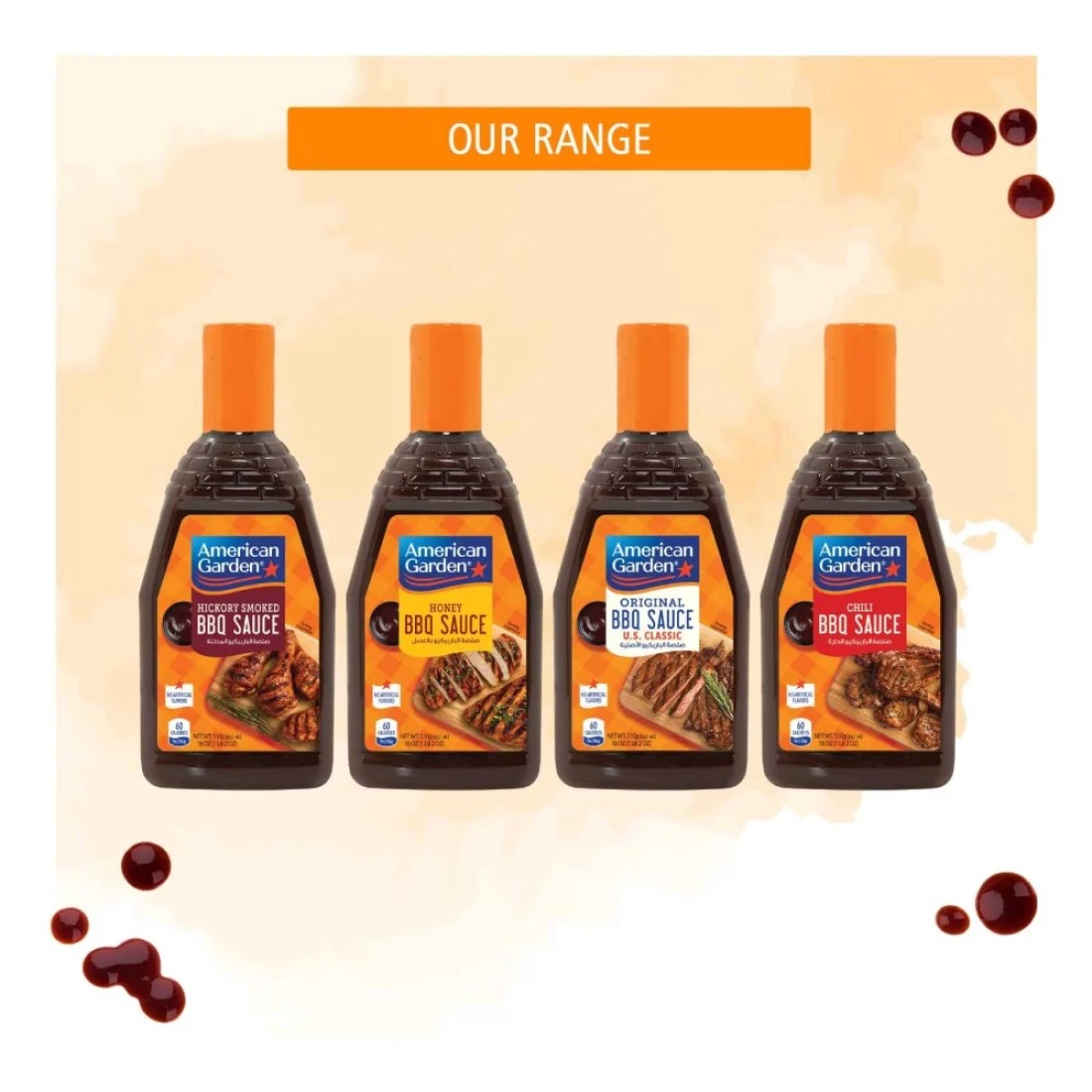 - إستخدم صلصة الشواء من أمريكان غاردن لإضافة نكهة الشواء الأصيلة اللذيذة إلى مأكولاتك المفضلة الأطعمة