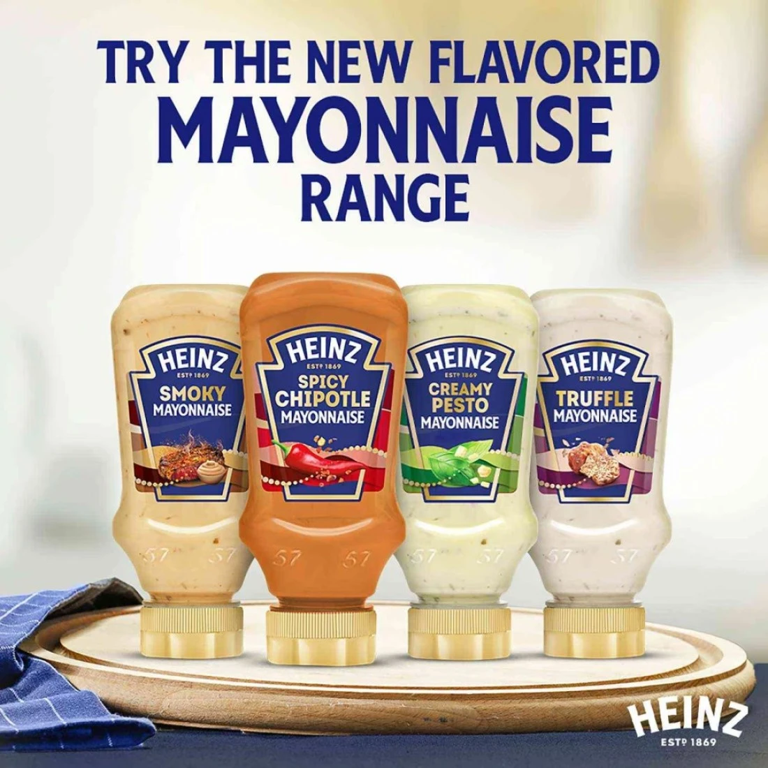 - المزيد من النكهات التي لا تُنسى: من الترافل إلى المدخن والبستو الكريمي – إن مايونيز هاينز متوفر بنكهات كثيرة أخرى لا تُنسى وملائمة لكافة المناسبات. >/li>