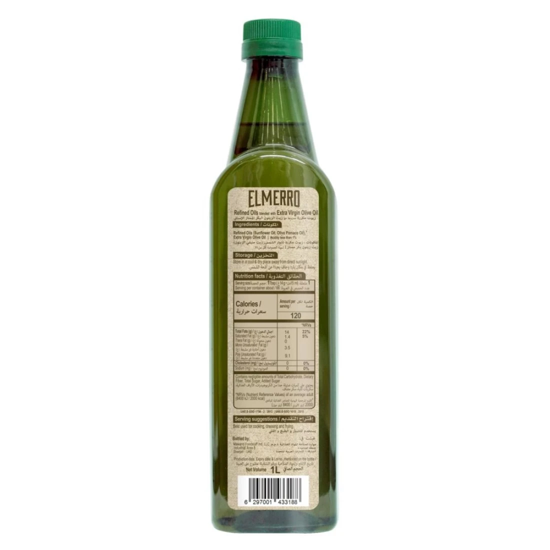 زيوت إلميرو المكررة المخلوطة مع زيت الزيتون البكر الممتاز هو زيت طهي عالي الجودة يجمع بين فوائد الزيوت المكررة والنكهة الغنية لزيت الزيتون البكر الممتاز. مثالي لجميع أنواع الطهي، يضيف هذا المزيج لمسة لذيذة لأطباقك مع توفير الفوائد الصحية لزيت الزيتون.