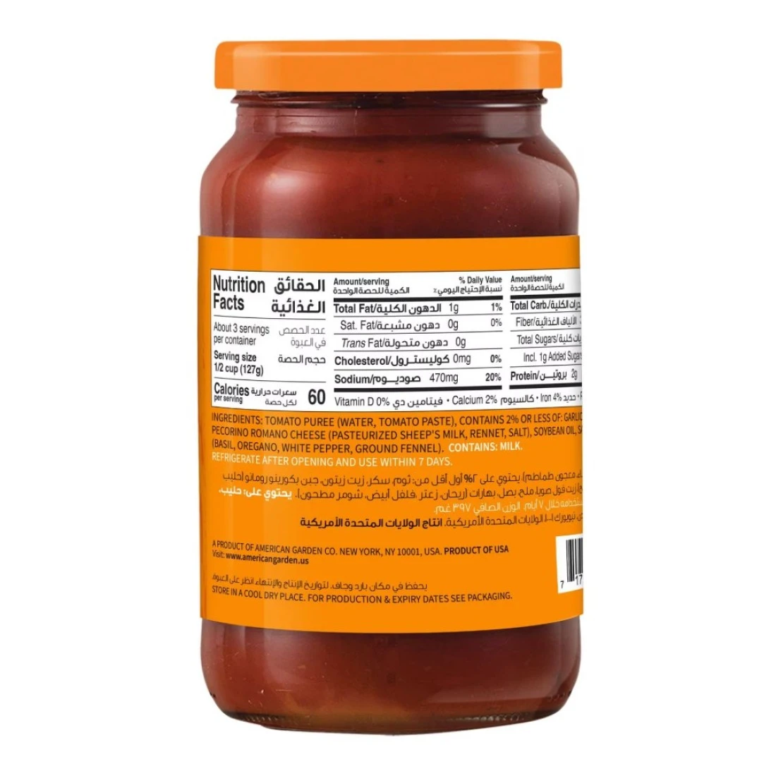 - تقدم أمريكان غاردن صلصة الباستا التقليدية الأمريكية 397 غرام طعمًا منزليًا أصيلًا مع نكهات إيطالية لذيذة