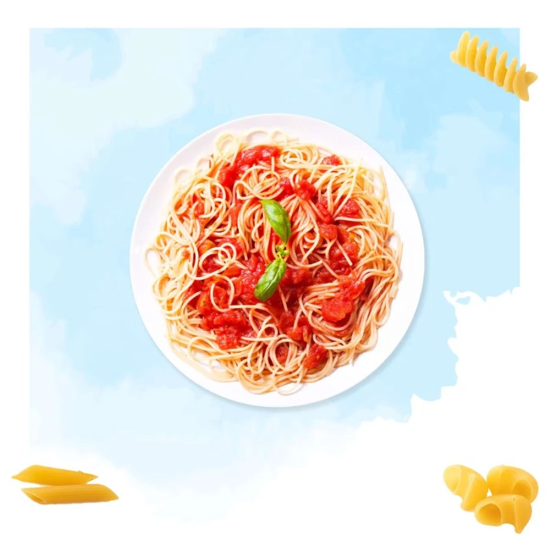 - تم إعداد صلصة الباستا من الطماطم الطازجة اللذيذة التي تم إختيارها بعناية يدويًا لتقديم مزيج رائع من الطماطم الحلوة والأعشاب والتوابل اللذيذة