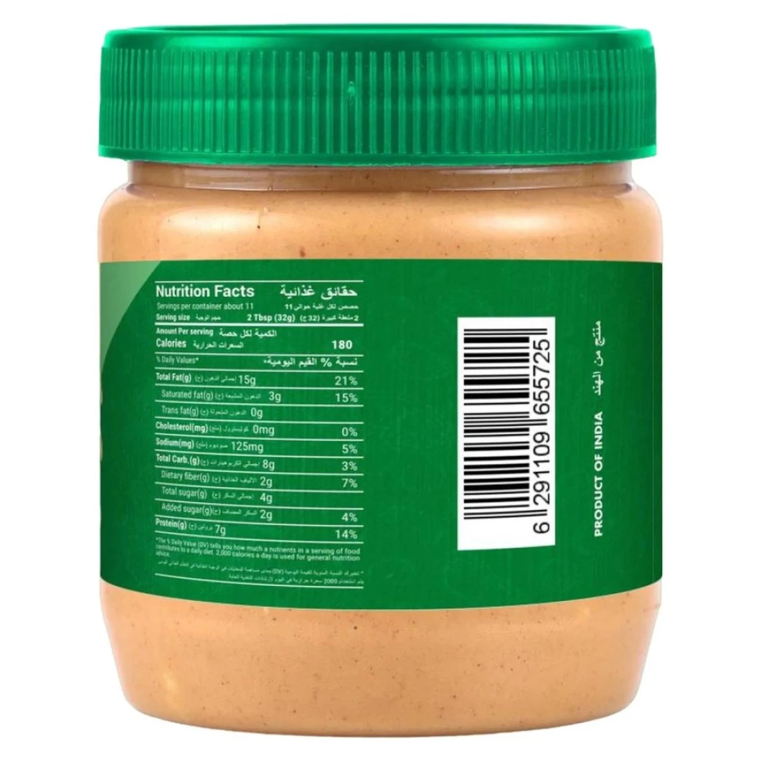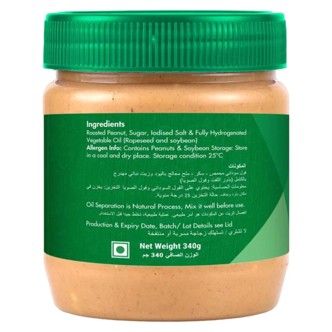ingredients : فول سوداني محمص وسكر وملح معالج باليود والزيت النباتي المهدرج بالكامل (بذور اللفت وفول الصويا)