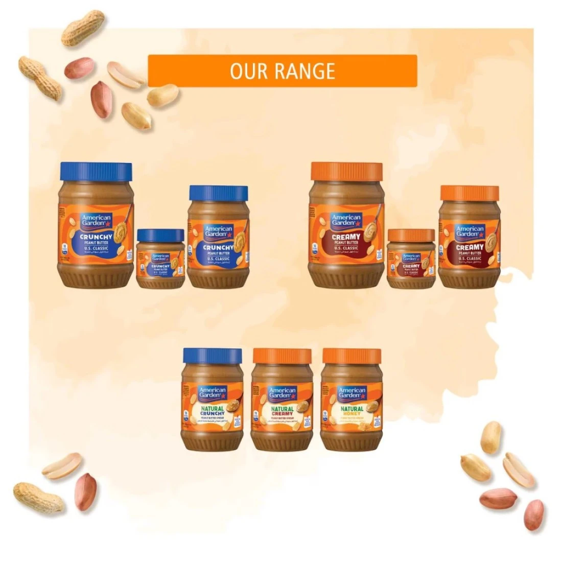 - كريمة سلسة ولذيذة ، تقدم زبدة الفول السوداني الكريمية من أميريكان غاردن 340 غرام مذاقًا أمريكيًا أصيلًا