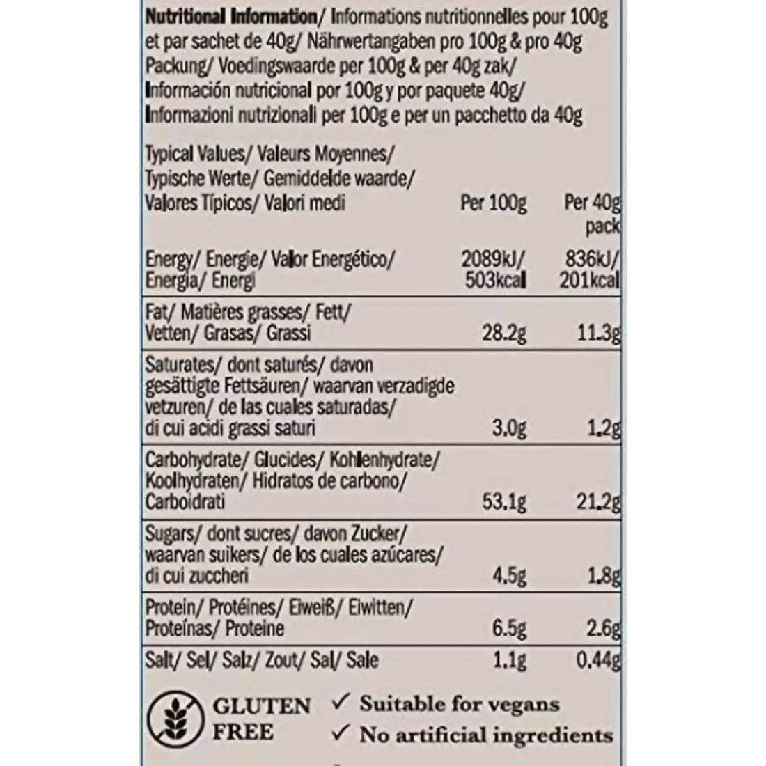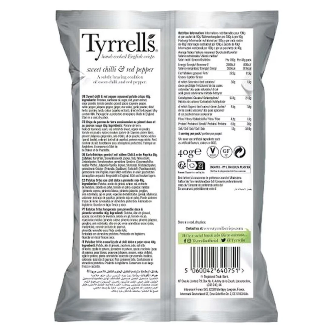 ingredients : بطاطس ، زيت دوار شمس ، سكر ، ملح ، خلاصة خميرة ، مسحوق بصل ، مسحوق طماطم ، بهارات مطحونة (فلفل حريف ، فلفل أبيض ، فلفل هبينو ، زنجبيل ، يانسون نجمي) ، مسحوق ثوم ، أعشاب مجففة (بقدونس ، ريحان) ، لون (مستخلص بابريكا) ، فلفل أحمر مجفف