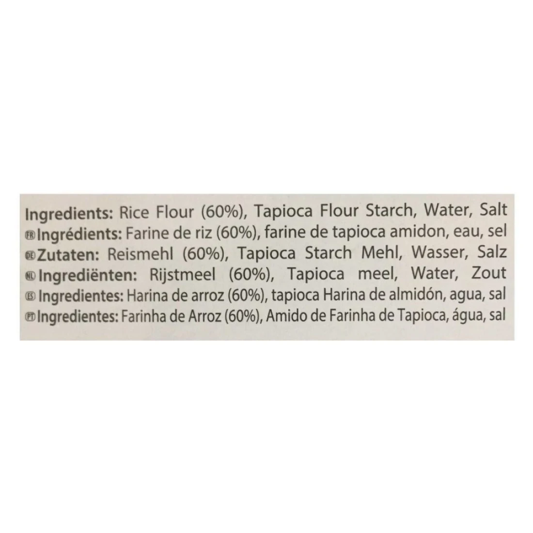 ingredients : دقيق أرز 60.00٪ ، دقيق تابيوكا ، ماء ، ملح.