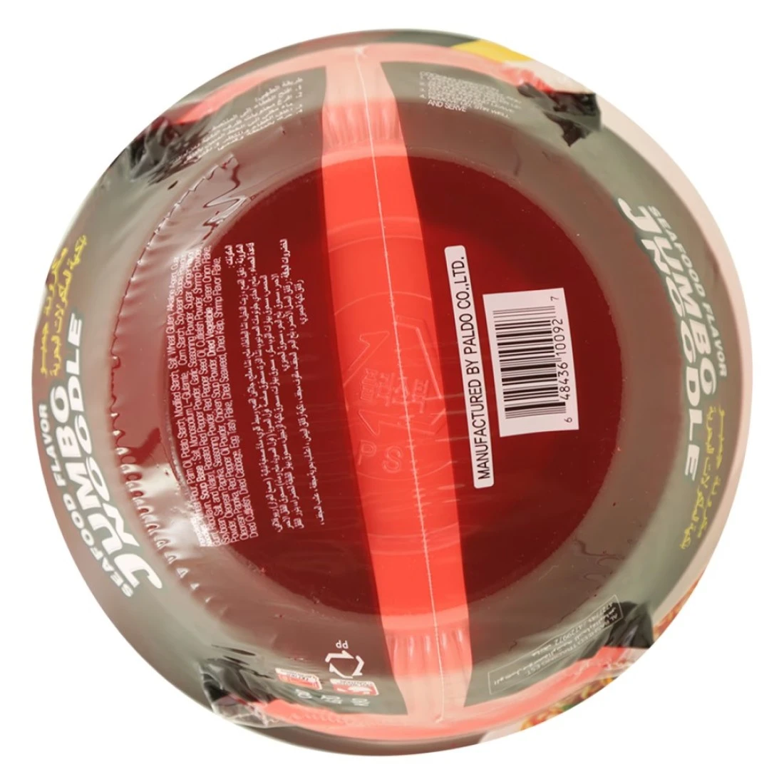ingredients : نودلز: دقيق القمح، زيت النخيل، نشاء البطاطا، نشاء معدل، ملح، جلوتين القمح، عامل قلوي، صمغ الغار، ريبوفلافين. قاعدة الحساء: ملح، L-جلوتامات المونو صوديوم، نشا الذرة، مسحوق صلصة الصويا (صويا، ملح، ماء)، مسحوق الفلفل الأحمر المحمص، مسحوق توابل الثوم، سكر، مسحوق الزنجبيل، مسحوق البابريكا، مسحوق التوابل، زيت بذور الفلفل الأحمر، مسحوق الحبار، مسحوق الروبيان، مسحوق البابريكا، مسحوق زيت الفلفل الأحمر، مسحوق حساء الدجاج. خضار مجففة: شريحة البصل الأخضر، حبار مجفف، كرنب مجفف، شريحة بيض شهية، أعشاب بحرية مجففة، كيلب مجفف، شريحة نكهة الروبيان.