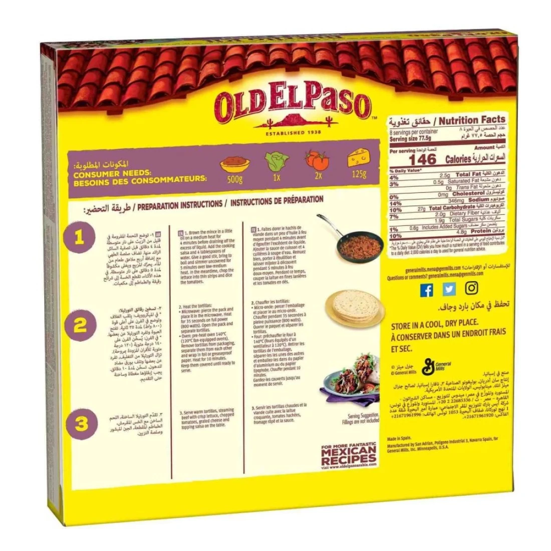 - إستمتع بلحم متبل بلذة على فرشة من الخس المقرمش مع الجبن المذاب وصلصة التاكو من أولد إل باسو، ملفوفة بشكل محكم في تورتيلا الدقيق الناعمة والدافئة.