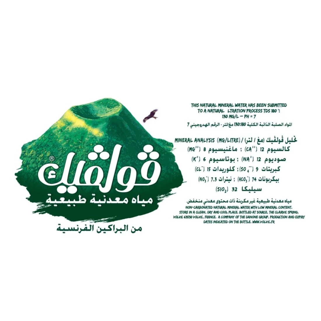 - المصدر: يتم الحصول على مياه فولفيك المعدنية الطبيعية من منطقة بركانية نقية في أوفيرني، فرنسا، مما يضمن تكوينًا معدنيًا فريدًا