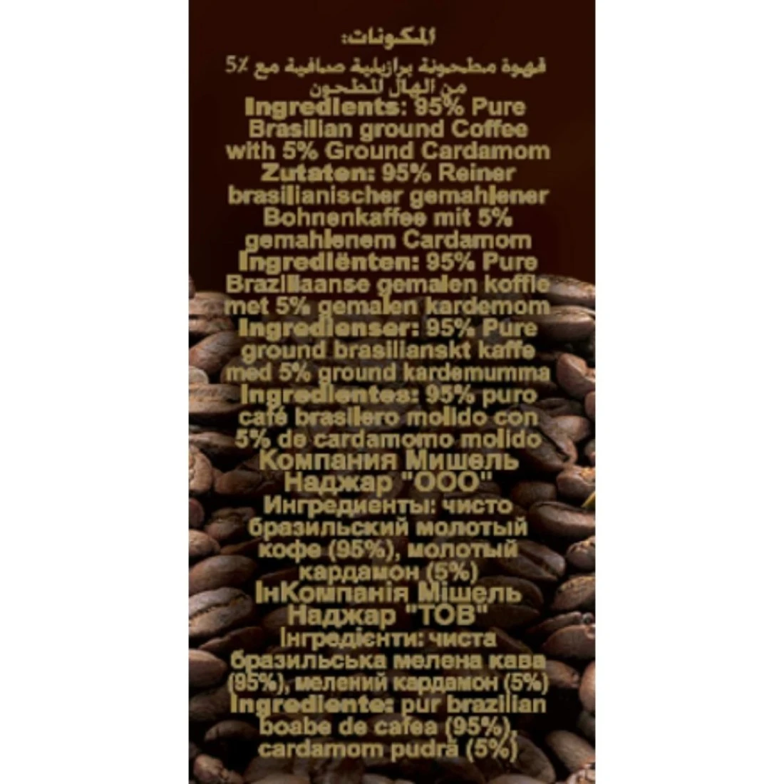 ingredients : قهوة برازيلية مطحونة نقية مع هيل
