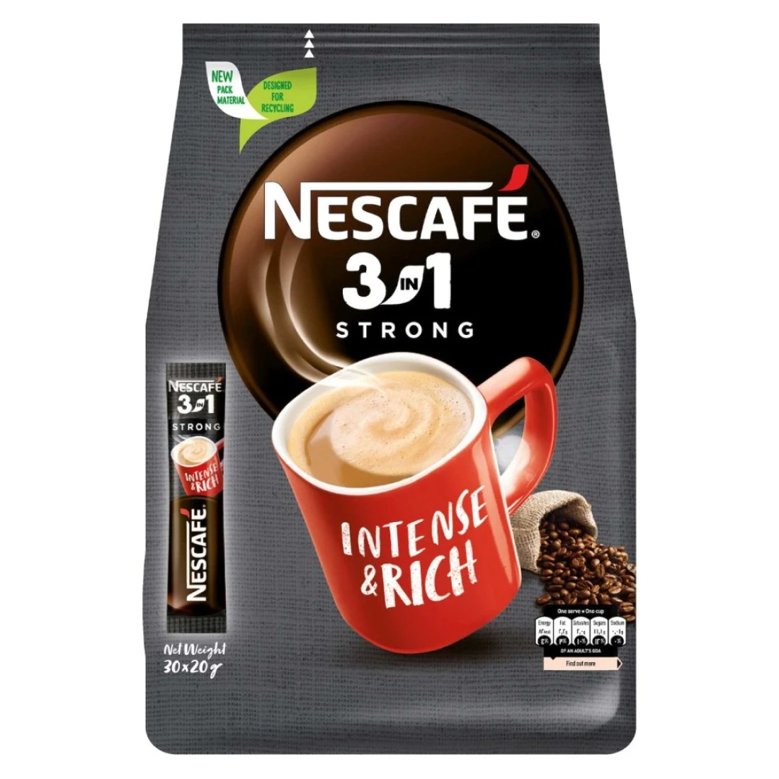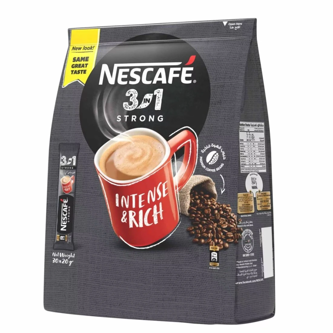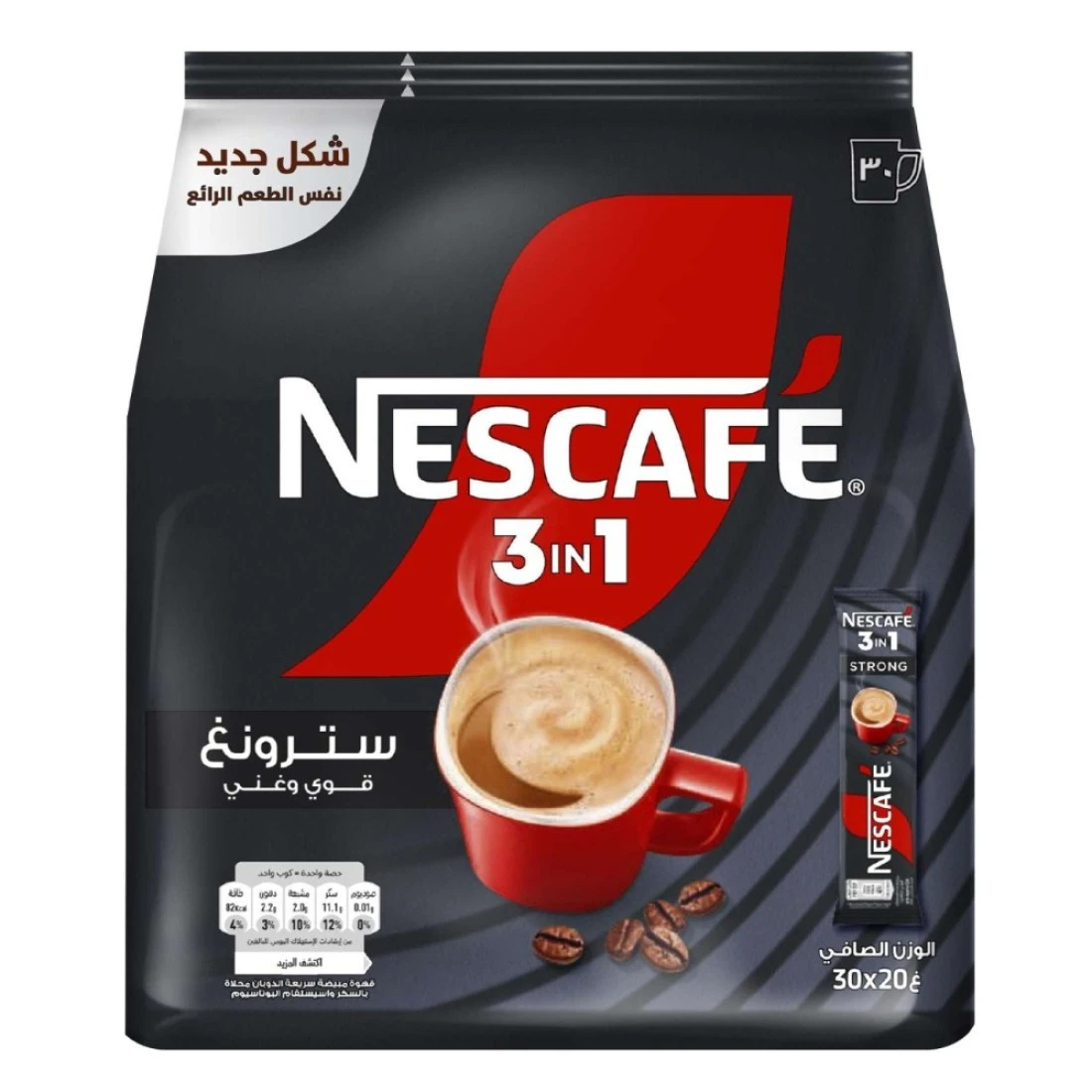 نسكافيه 3 في 1 مزيج قهوة سريعة التحضير قوي ومكثف وغني 20 غرام حزمة من 30