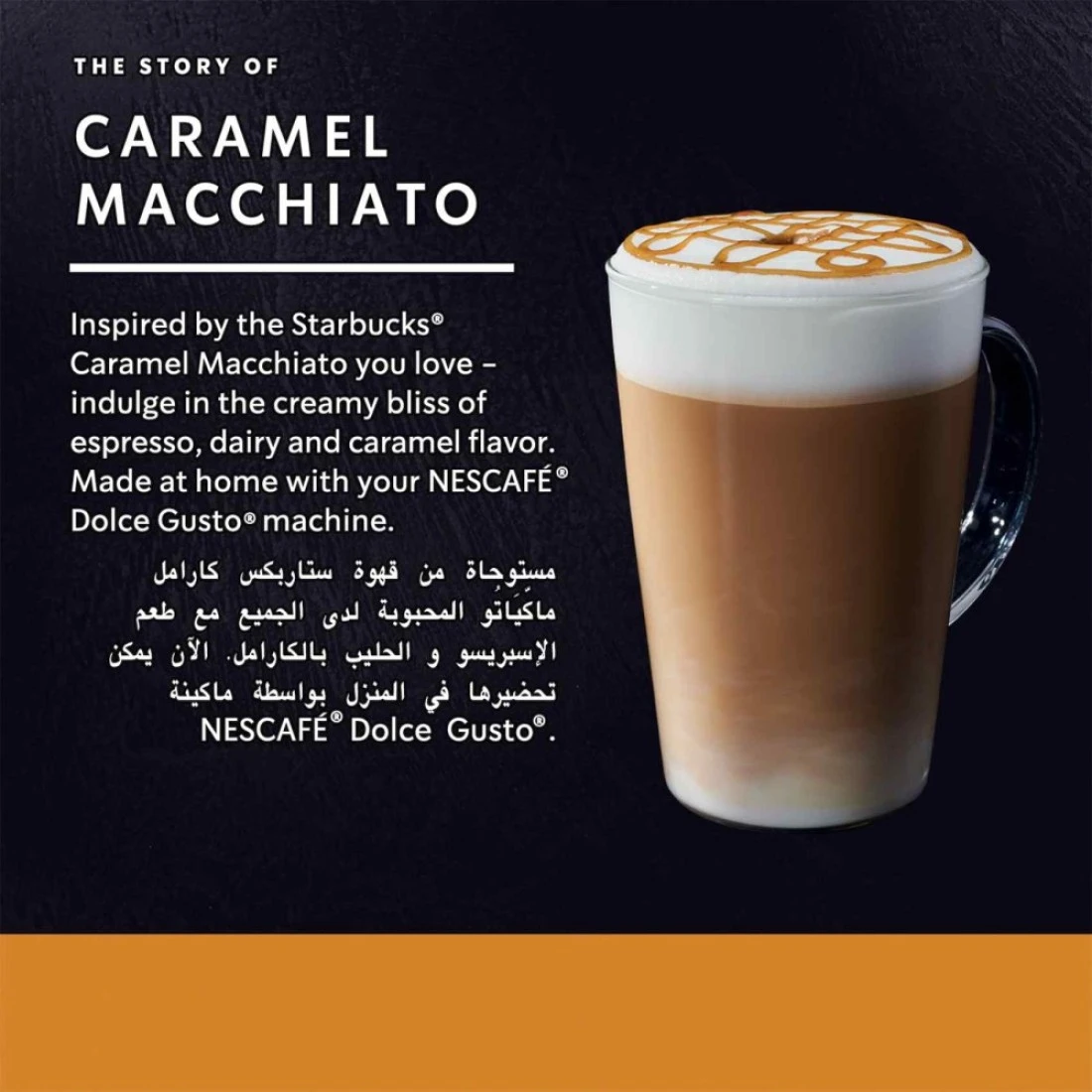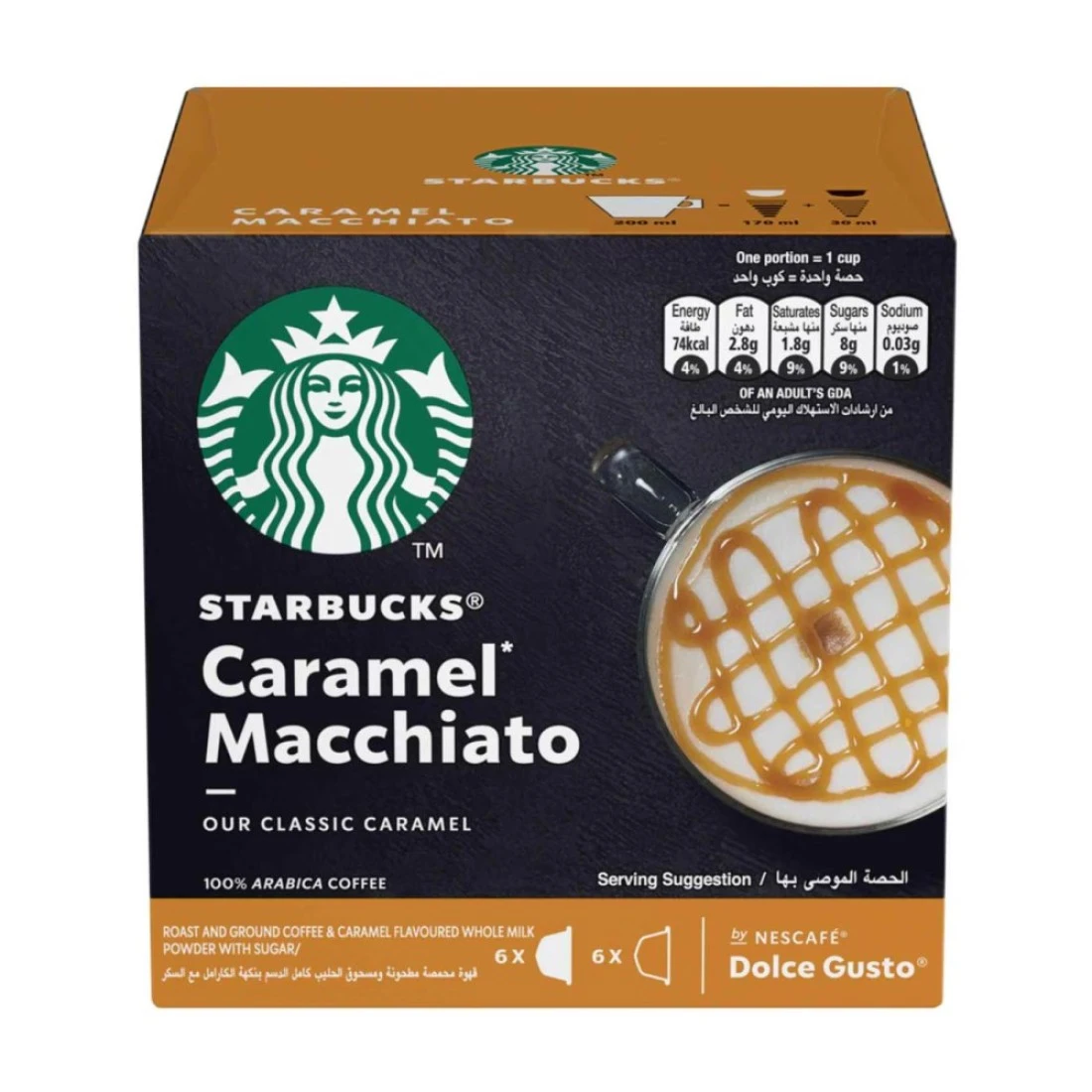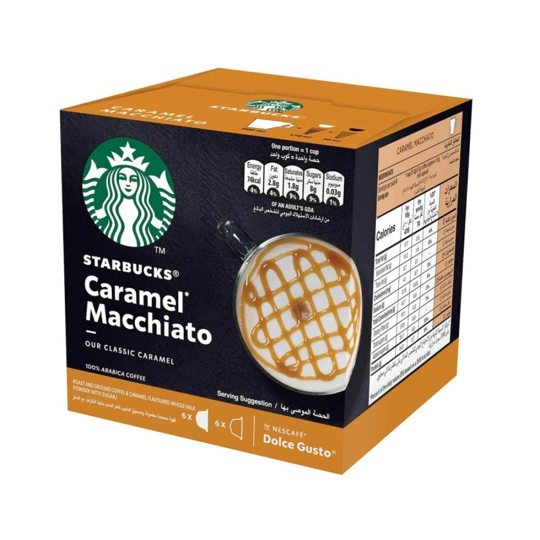 - نكهة غنية: انغمس في المذاق الفاخر لقهوة ستاربكس دولتشي غوستو كراميل ماكياتو، التي تتميز بمزيج متناغم من الإسبريسو والحليب المبخر والكراميل الحلو