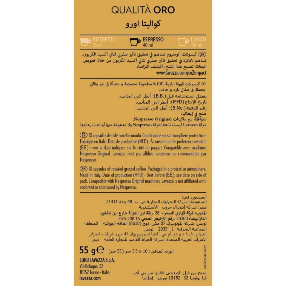 لافازا كواليتا أورو قهوة 10 كبسولات مصنوعة من الألومنيوم
