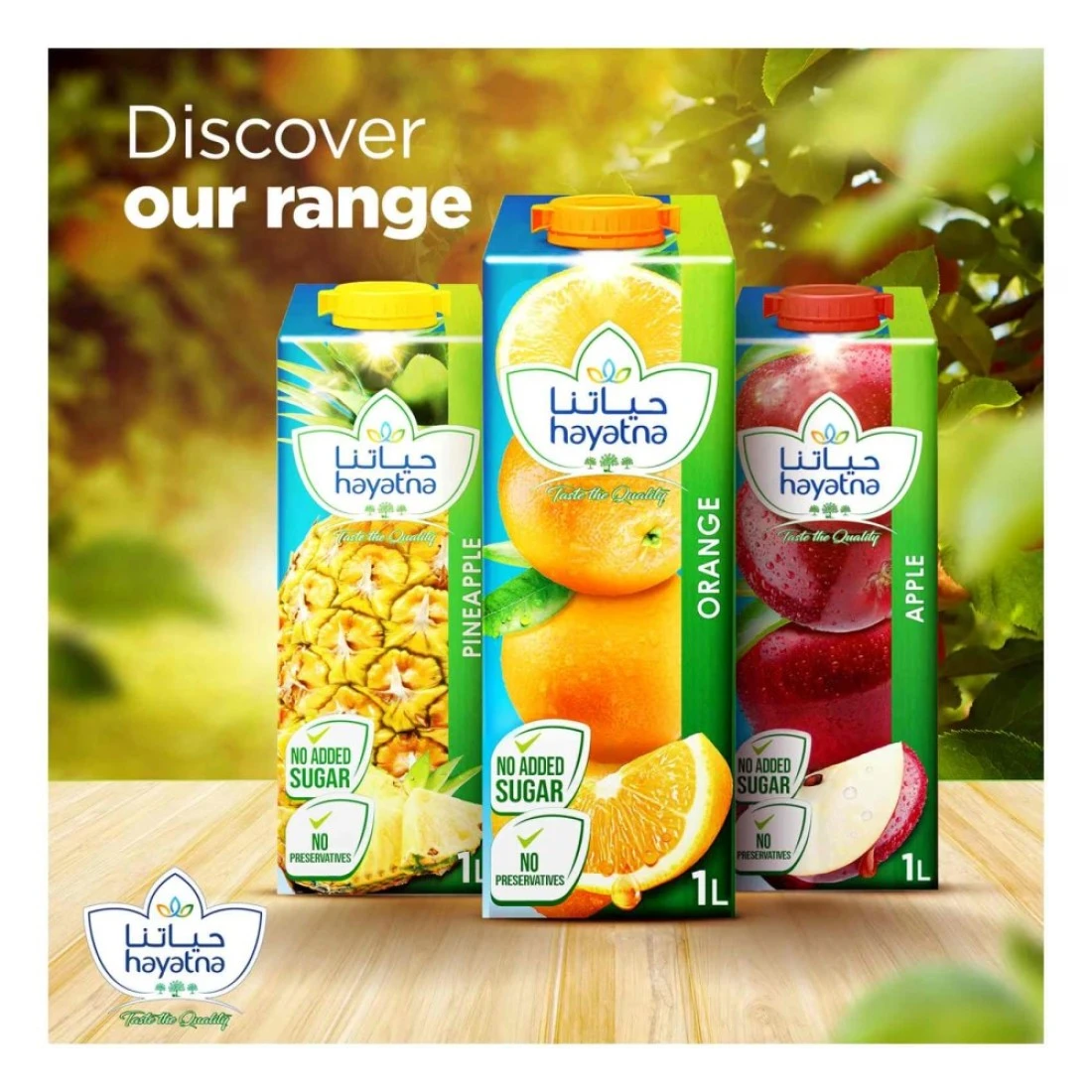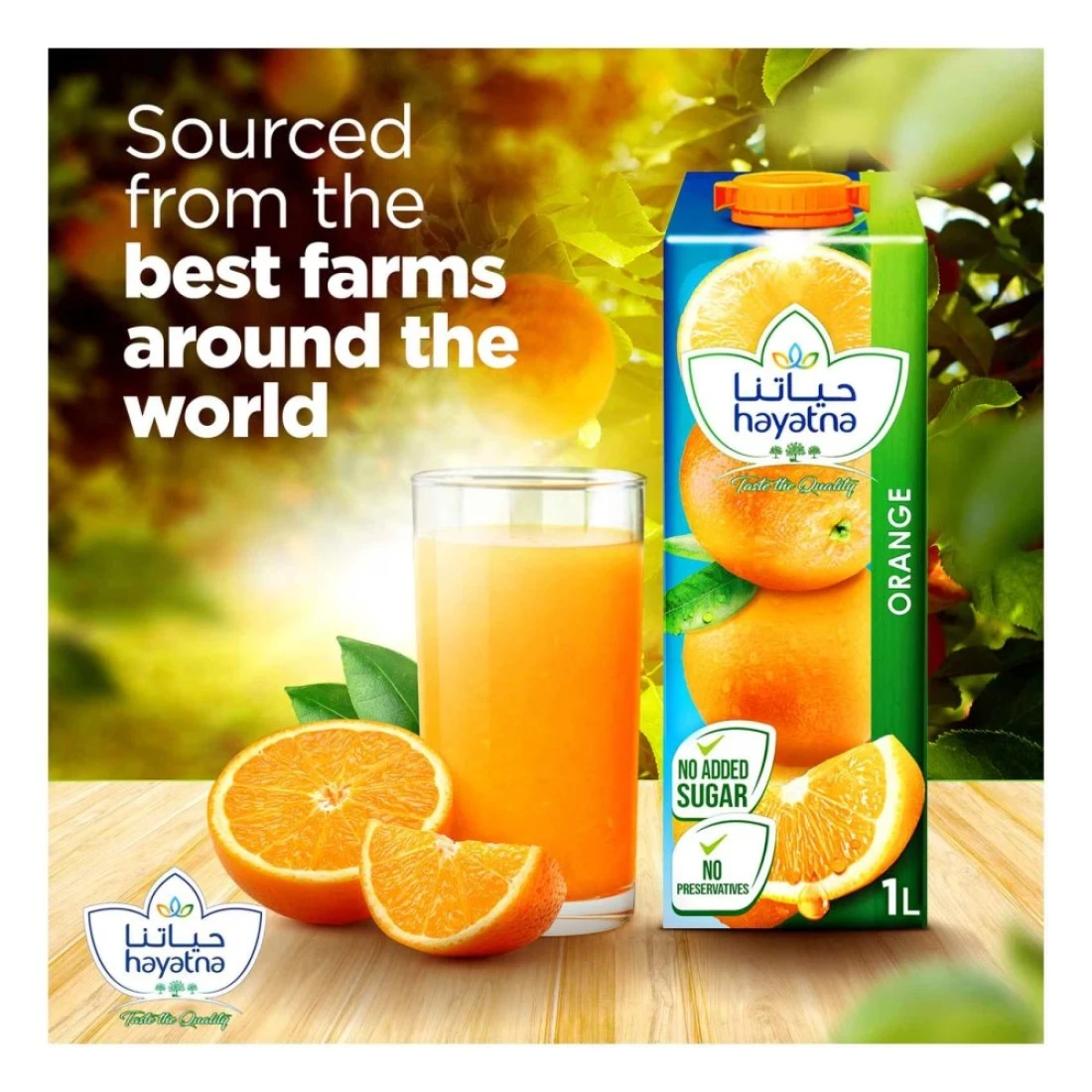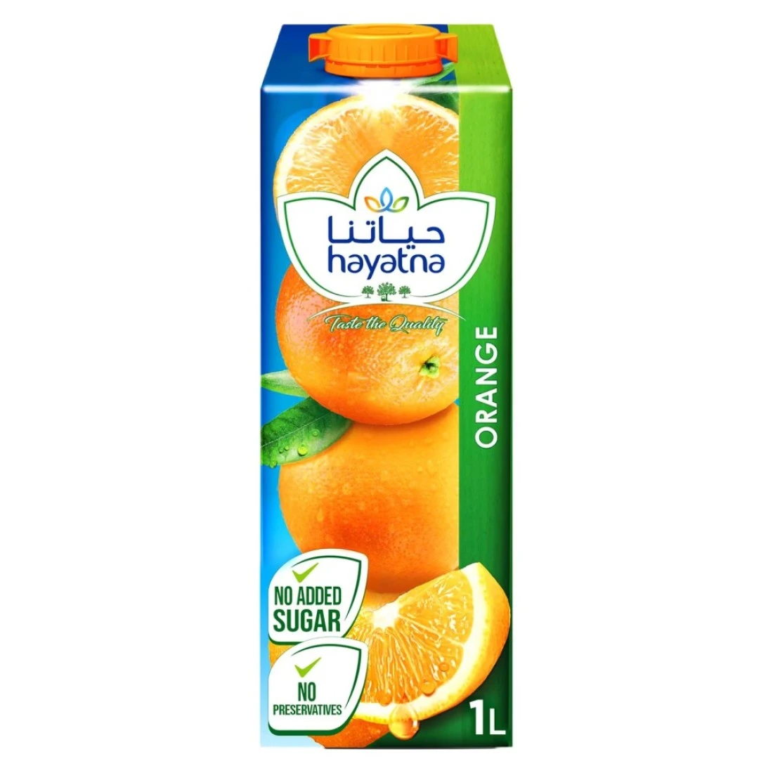 حياتنا عصير برتقال صافي خالي من المواد الحافظة بدون سكر مضاف 1 لتر