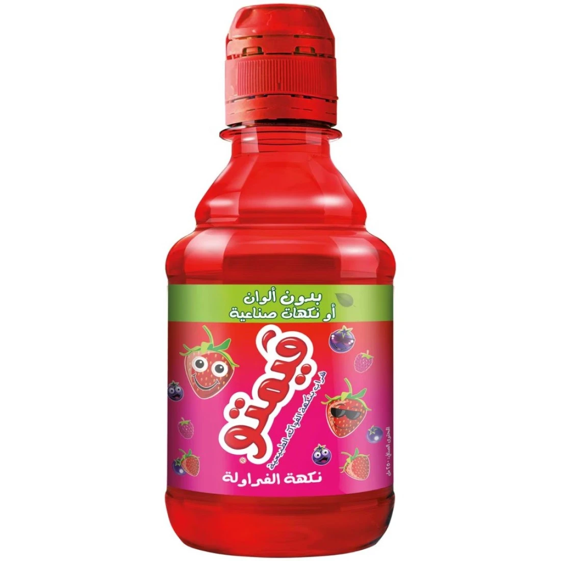 ingredients : ماء، سكر، حمضيات، نكهة الفراولة، عصير الجزر الأسود، عصير الكشمش الأسود، منظم الحموضة، مضادات الأكسدة، مواد حافظة.