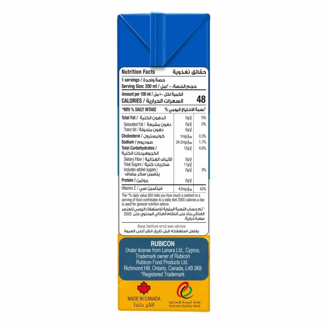 - تم إعداده باستخدام عصير فواكه 100% فقط وبدون سكر مضاف، يقدم لك روبيكون مذاق أجود أنواع المانغو الغريبة في هذا العصير اللذيذ